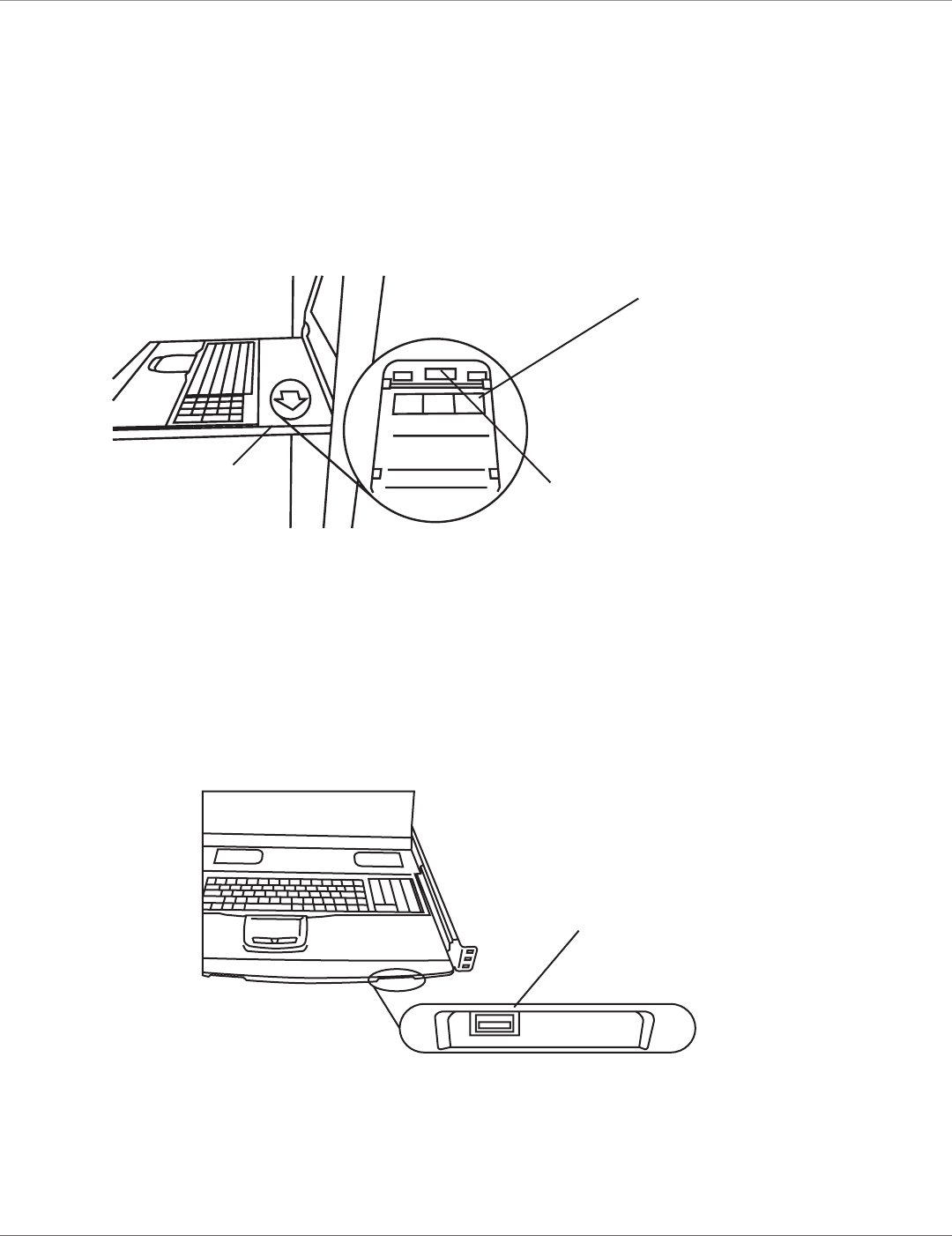 2. There is a round hole under the drawer. Using a finger, push the keyboard up and through the hole. See Figure 4-12.