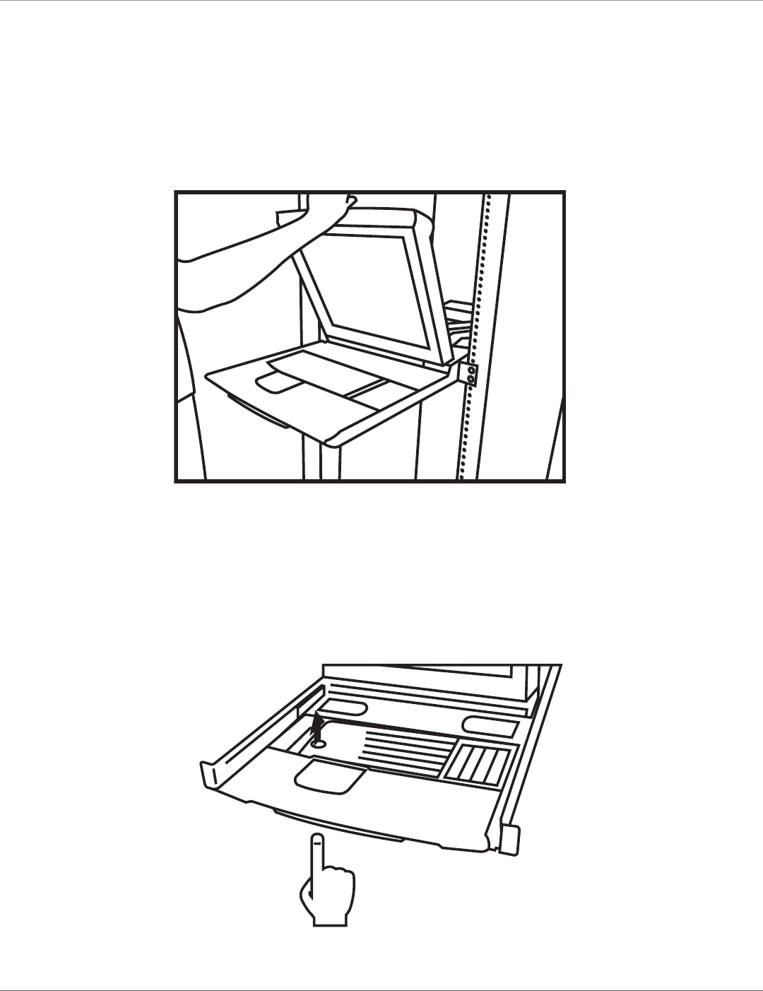 1. Pull the keyboard out to the end and unfold the LCD monitor. See Figure 4-11.
