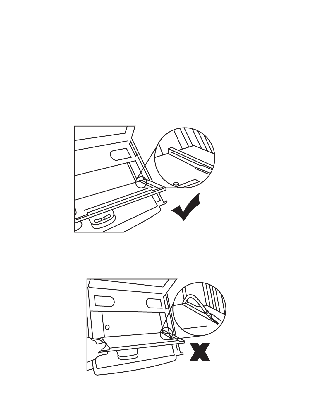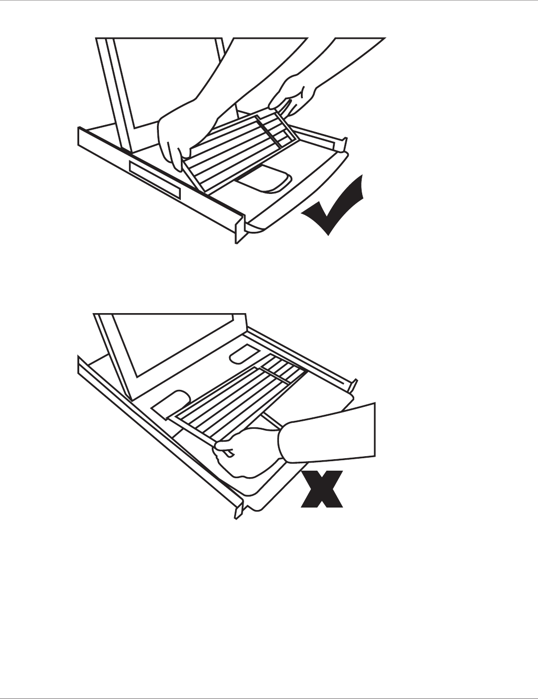 1. When installing a keyboard, make sure you place the cable flat inside the tray.