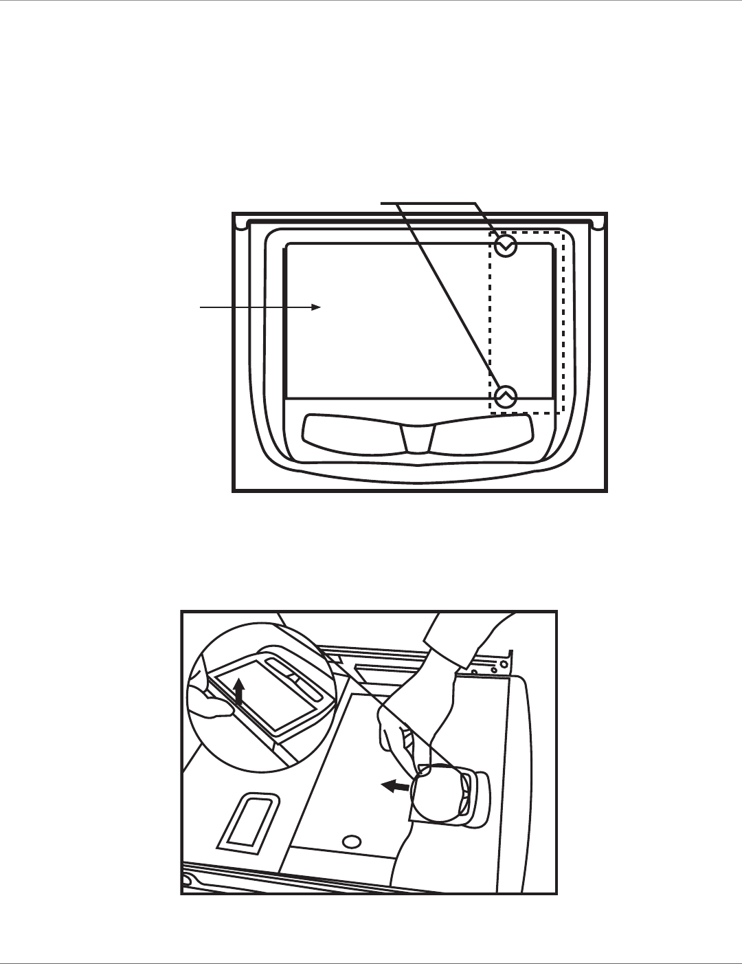 To push the monitor back to the cabinet, first press and hold these two unlock plates together to flatten the monitor.