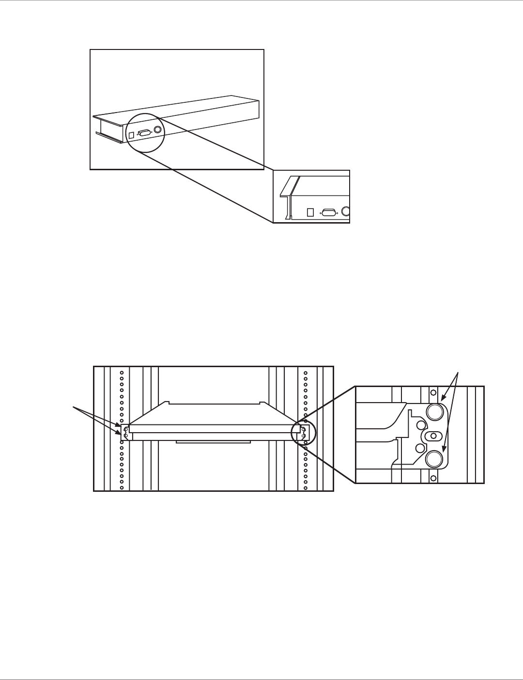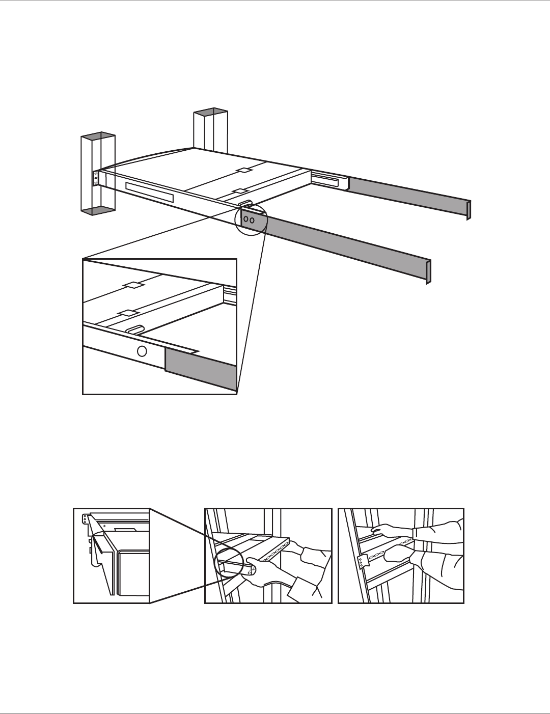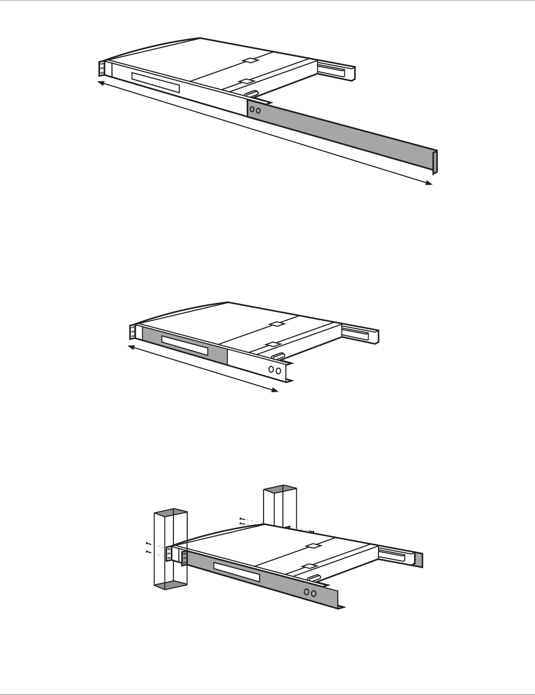 CAUTION: When the LCD monitor is pulled out all the way, you will see both edges of two metal unlock plates extended outside.