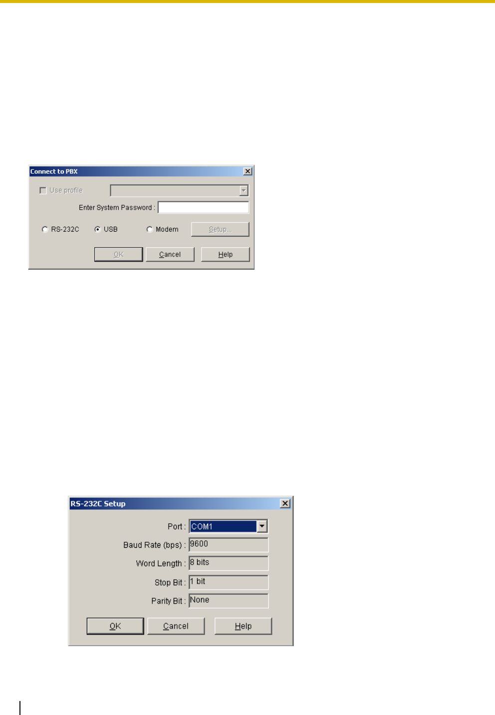 Describes the Connect menu, which offers options for connecting a PC to the PBX.