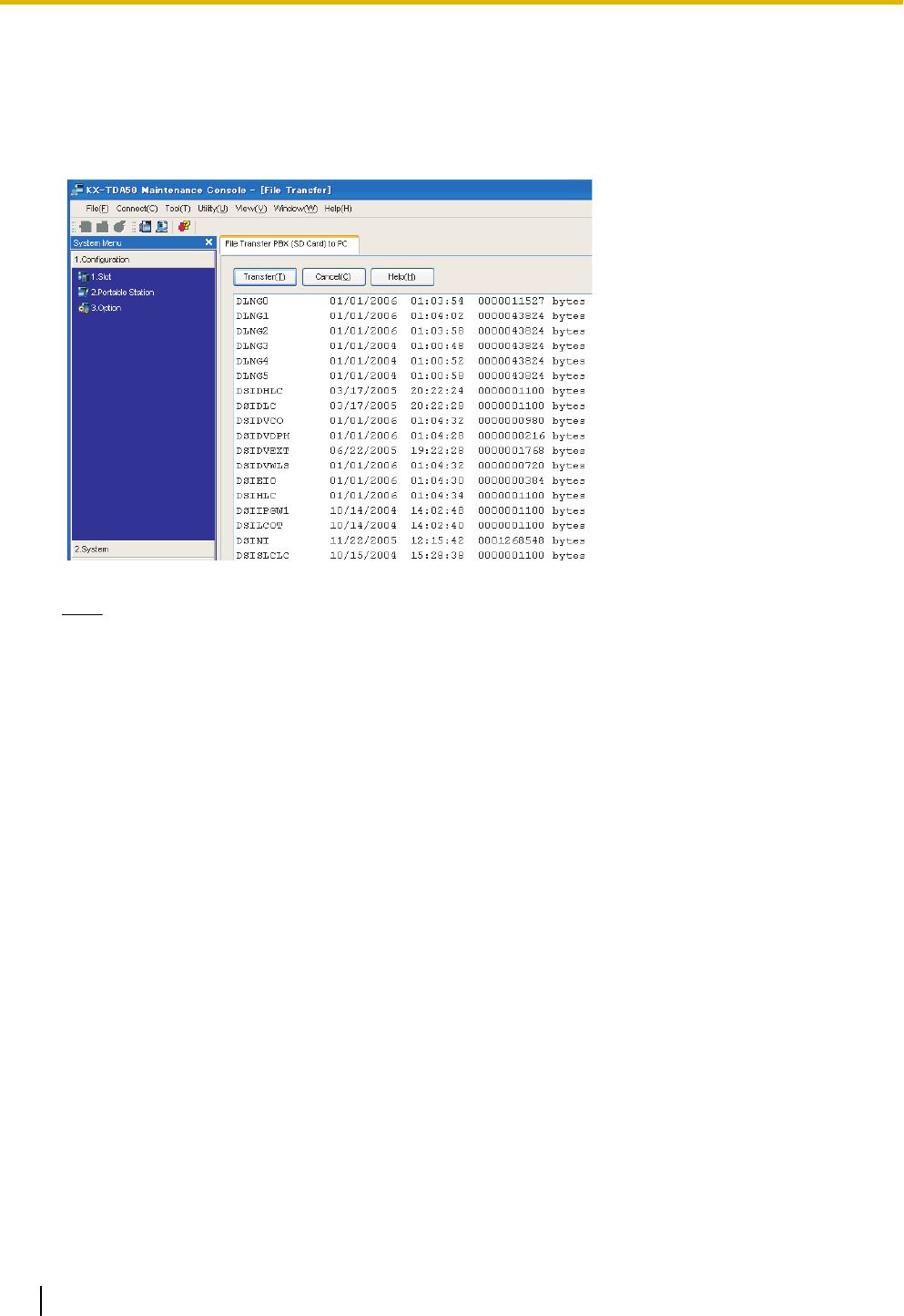 DSSYS_S, KX-TDA0920: DSYS_SUB), and a message displayed when the transfer is complete.