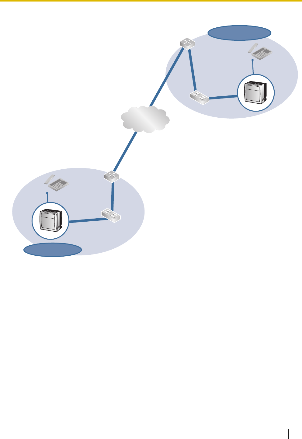 The following diagrams illustrate VoIP network with (i) a remote office LAN and (ii) another PBX installed at
