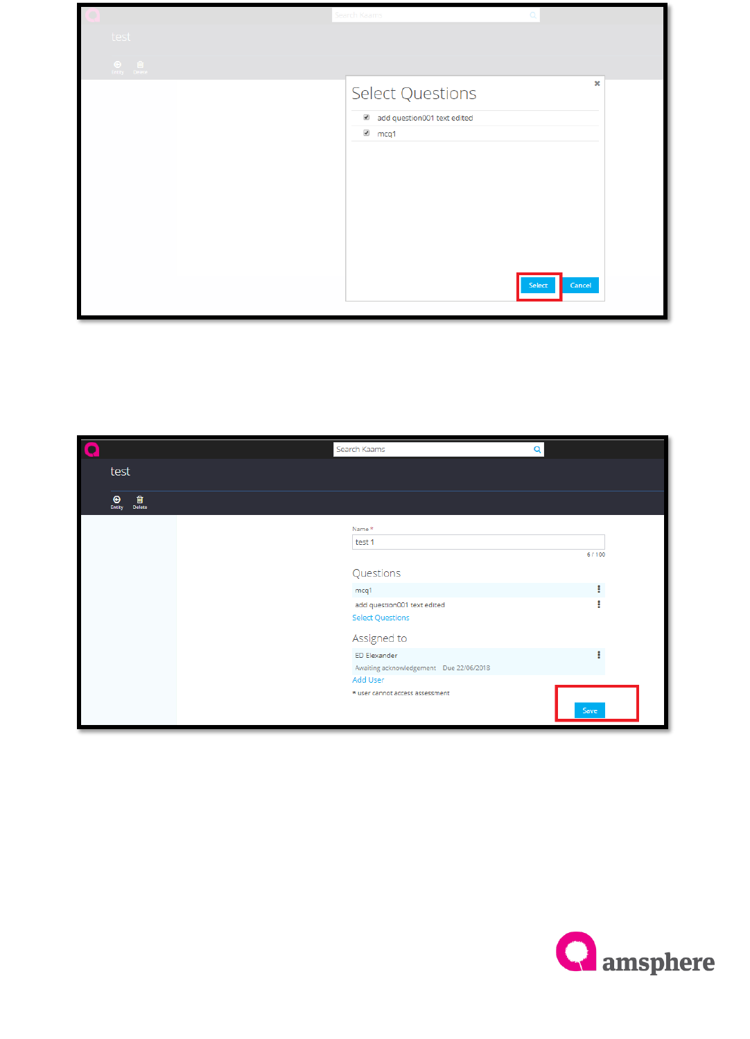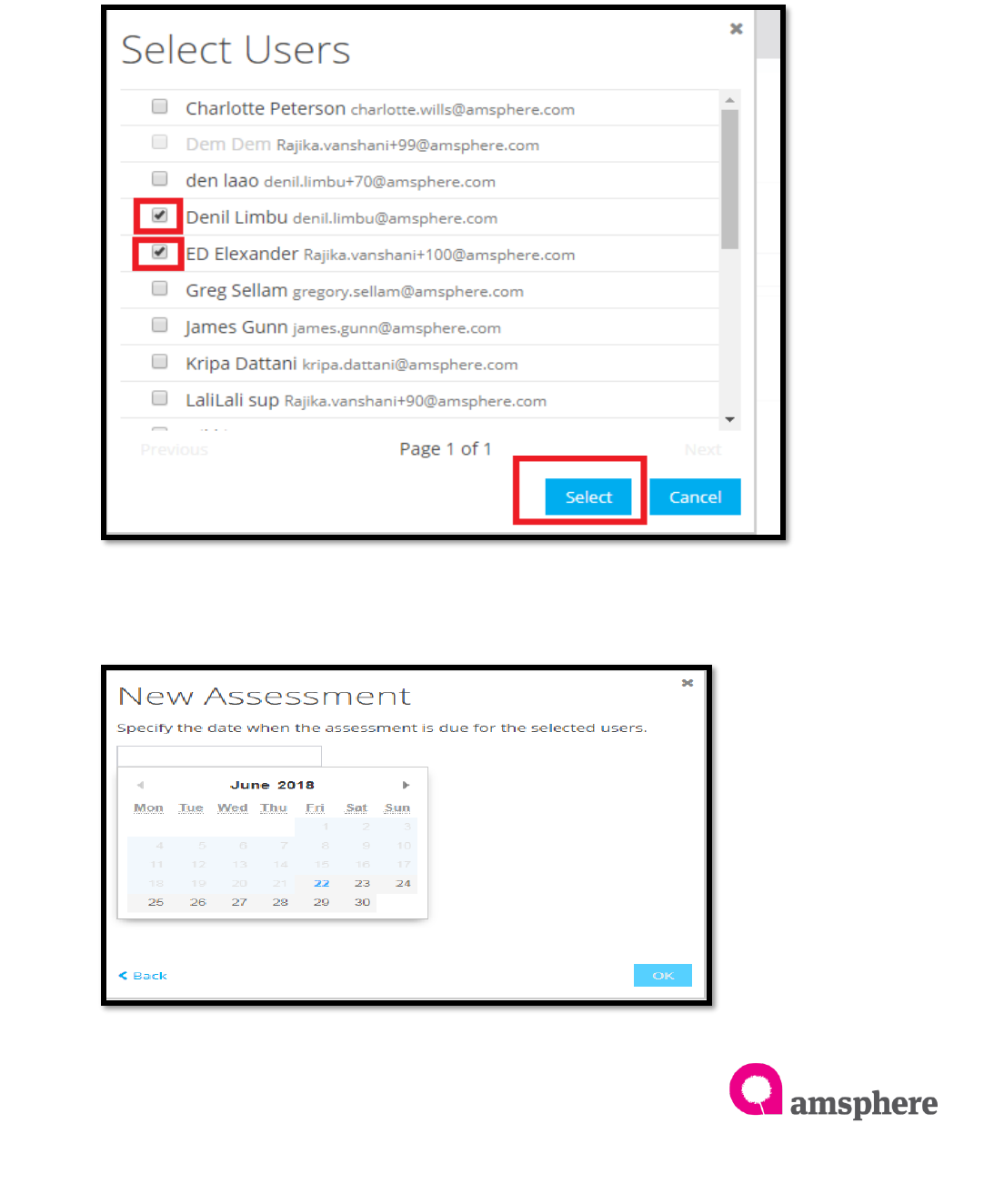 users and finally click on the ‘Select’ and ‘Save’ the changes in the assessment detail