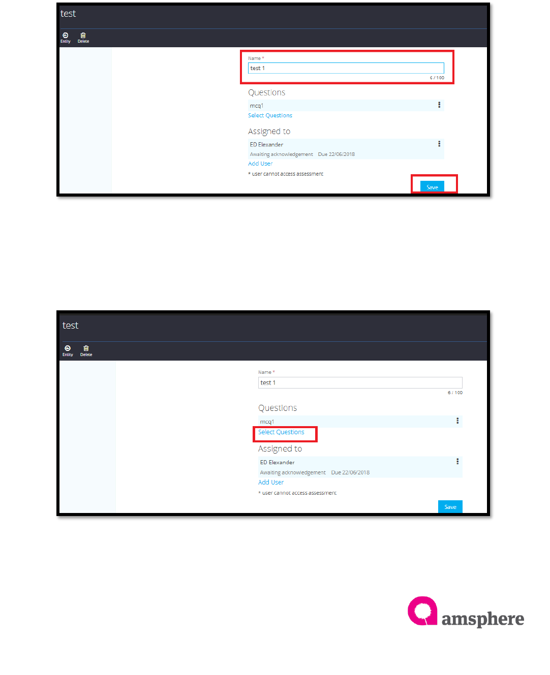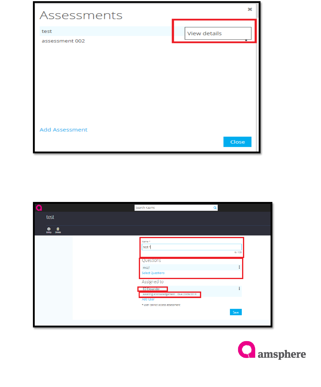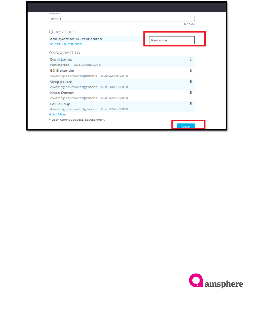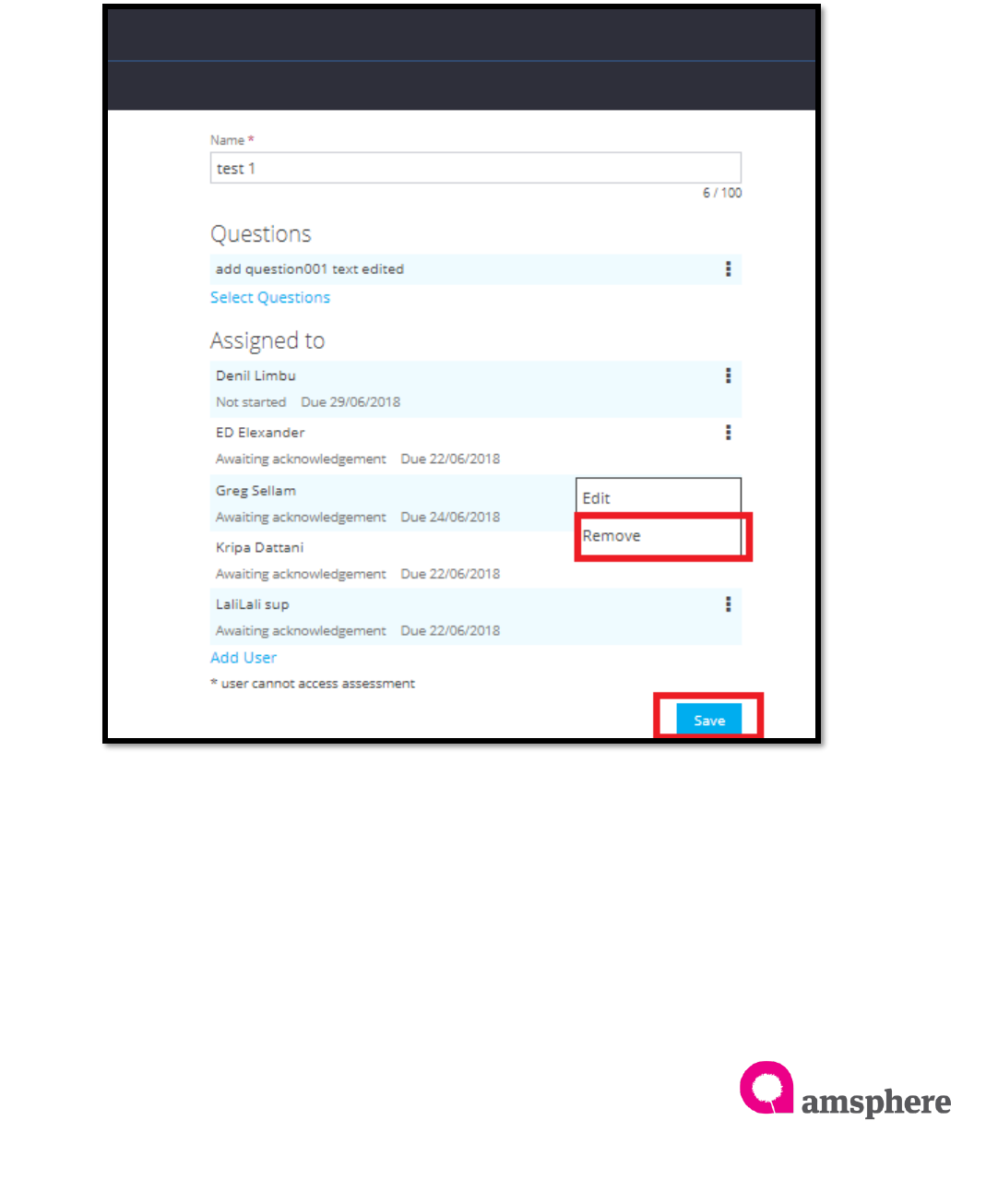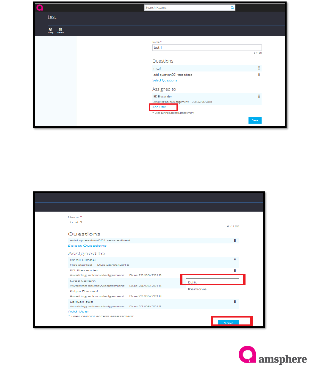 assigning all required users click ‘Save’ to save the assessment and assigned users.