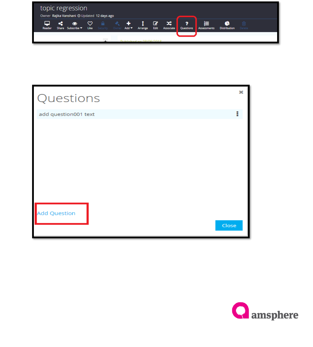 Once Click on the ‘Questions’ button to add questions, click on ‘Add Questions’ label