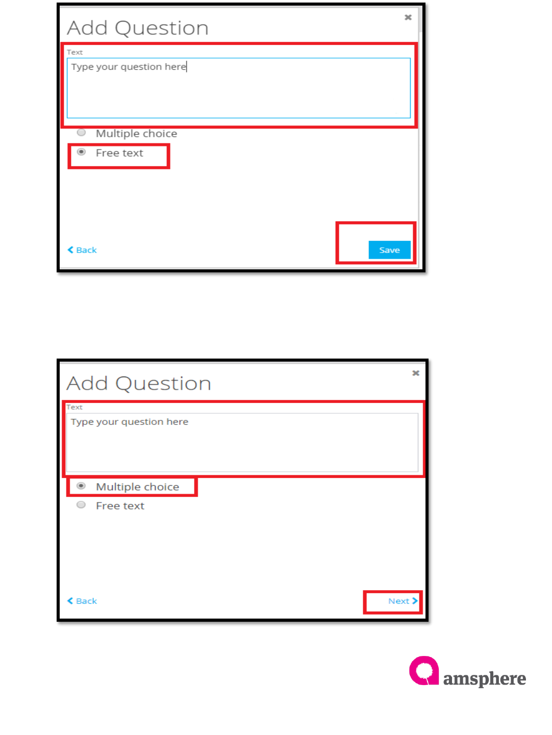 To add ‘Free Text’ questions, select free text radio button and type the question you
