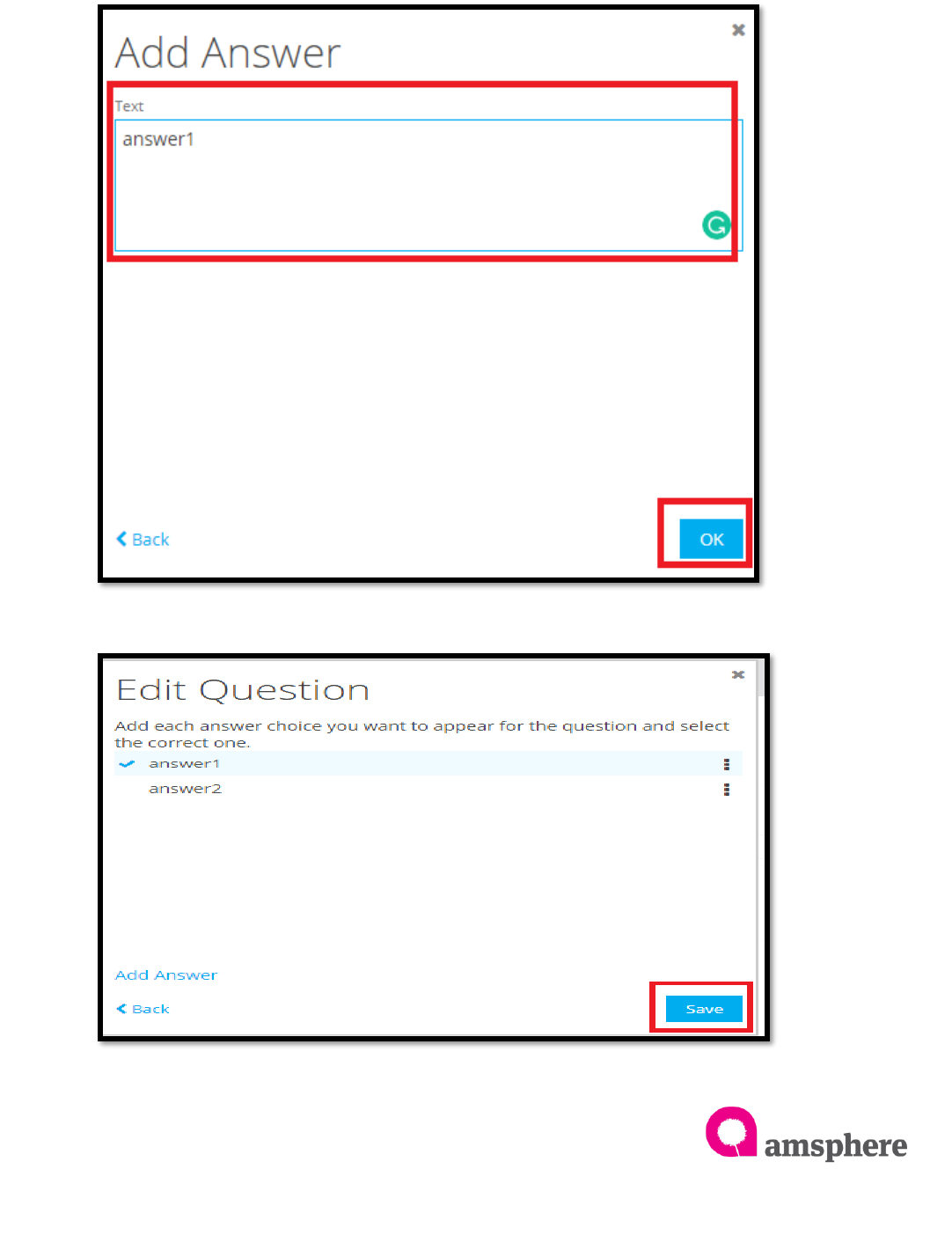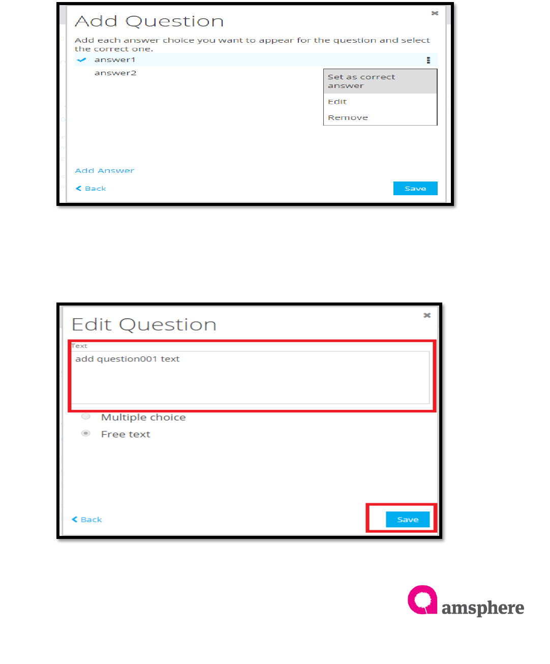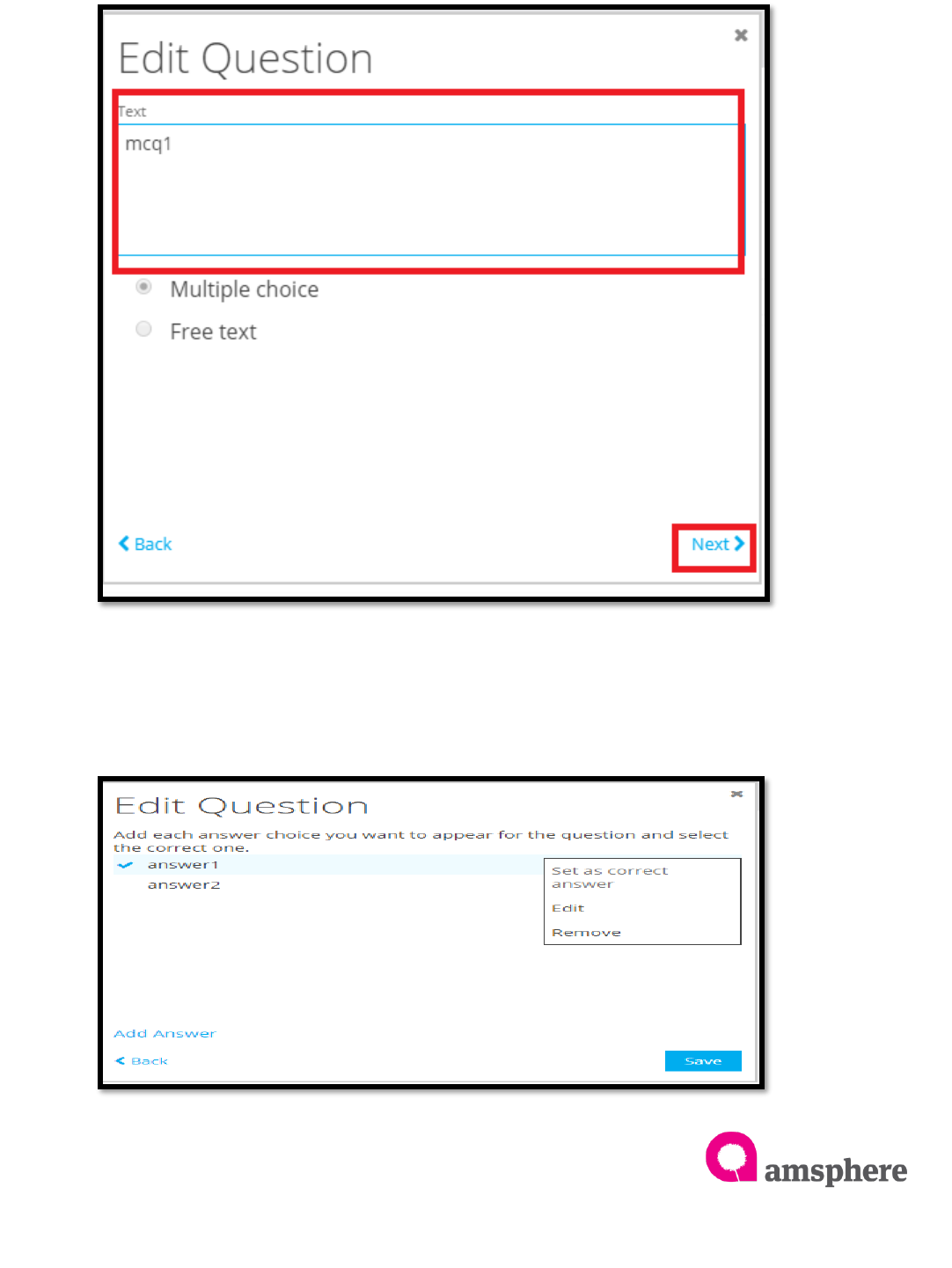 To Edit multiple choice answer, modify the answer in the ‘Add Answer’ page and click