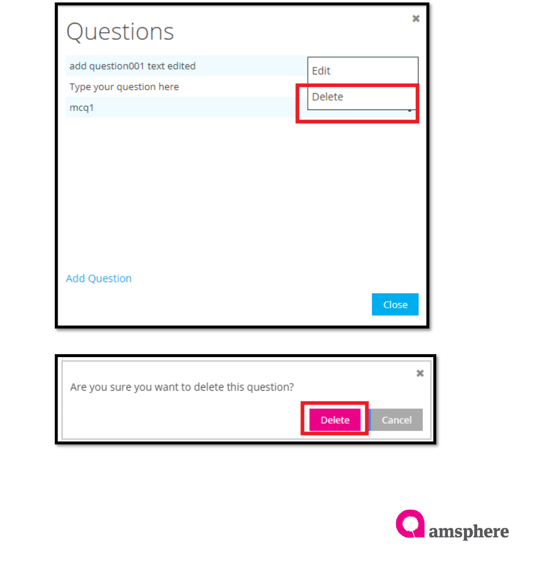 To delete a question, open question menu by clicking entity detail page ‘Questions’