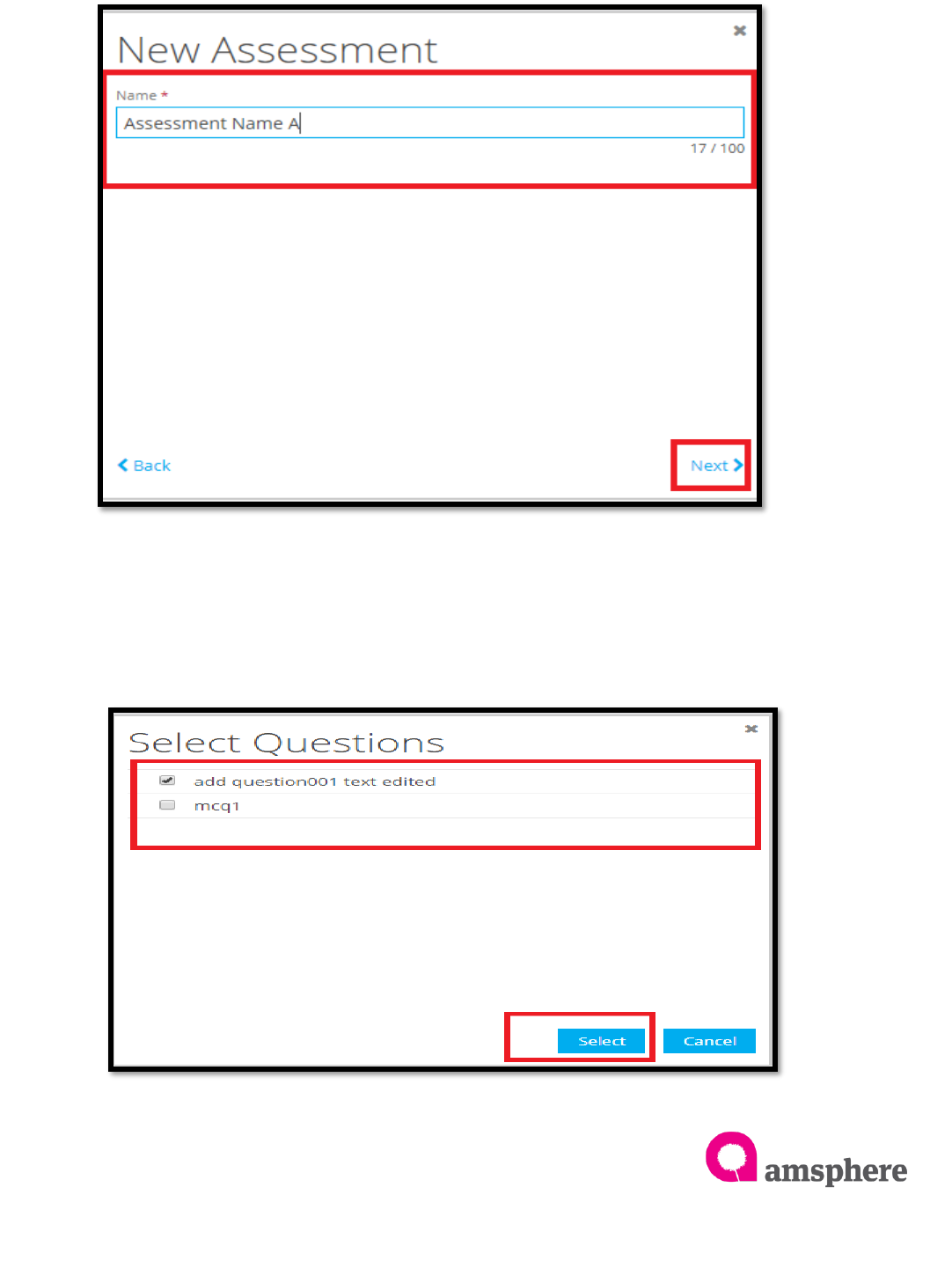 Then type name for the assessment in the ‘Name’ text field and click on ‘Next’ button