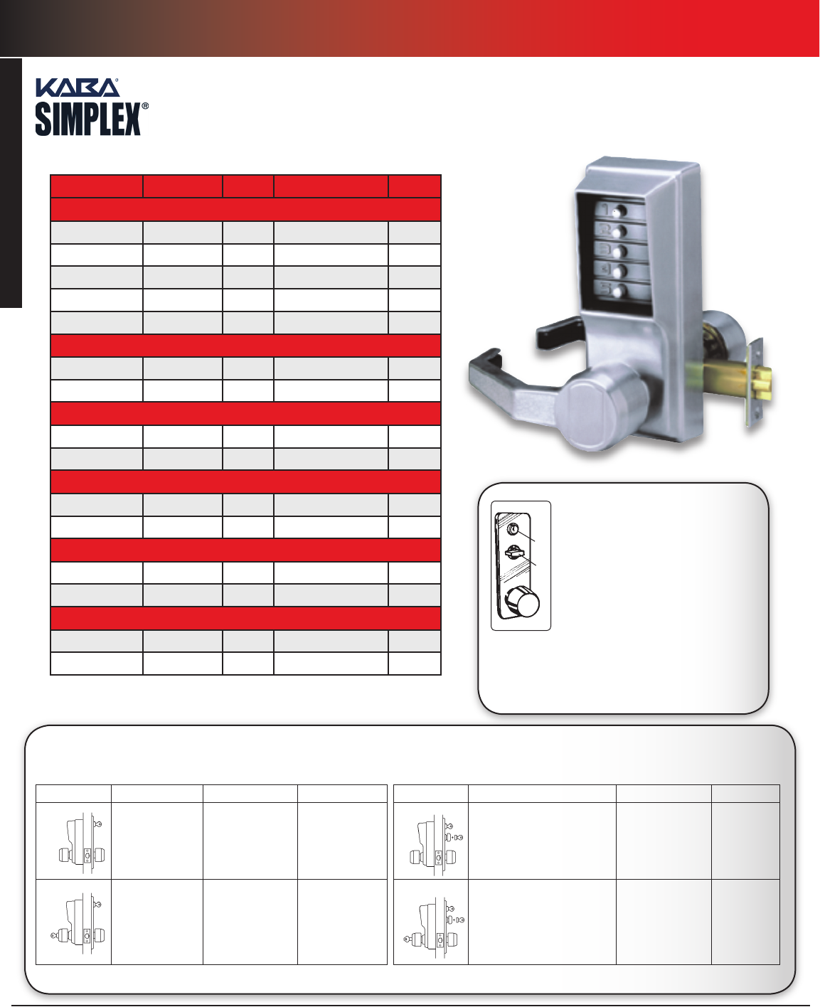 • Key Override: Allows a facility to maintain or initiate a keyed-alike security system with the same key