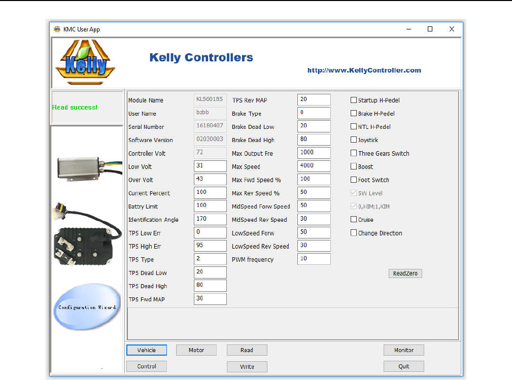 •KLS controller requires a 4pin connector to Kelly RS232 Converter to support the