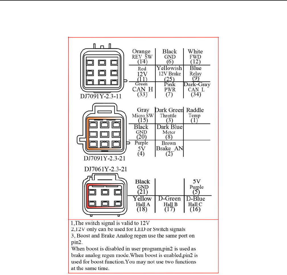 version.Pin 25 is 12V brake switch input port.Pin1 is motor temperature sensor input port.