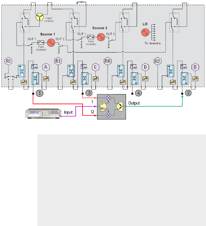 The combination of two internal signal sources, a signal combiner, S-parameter and