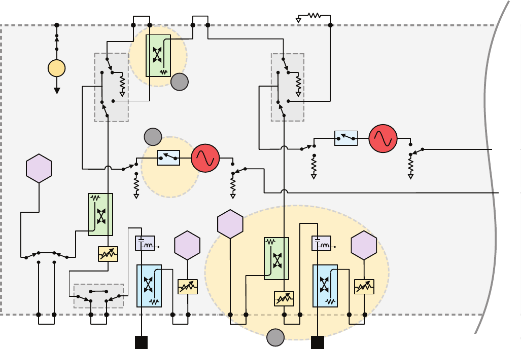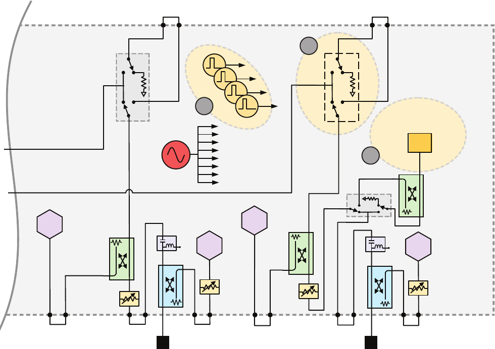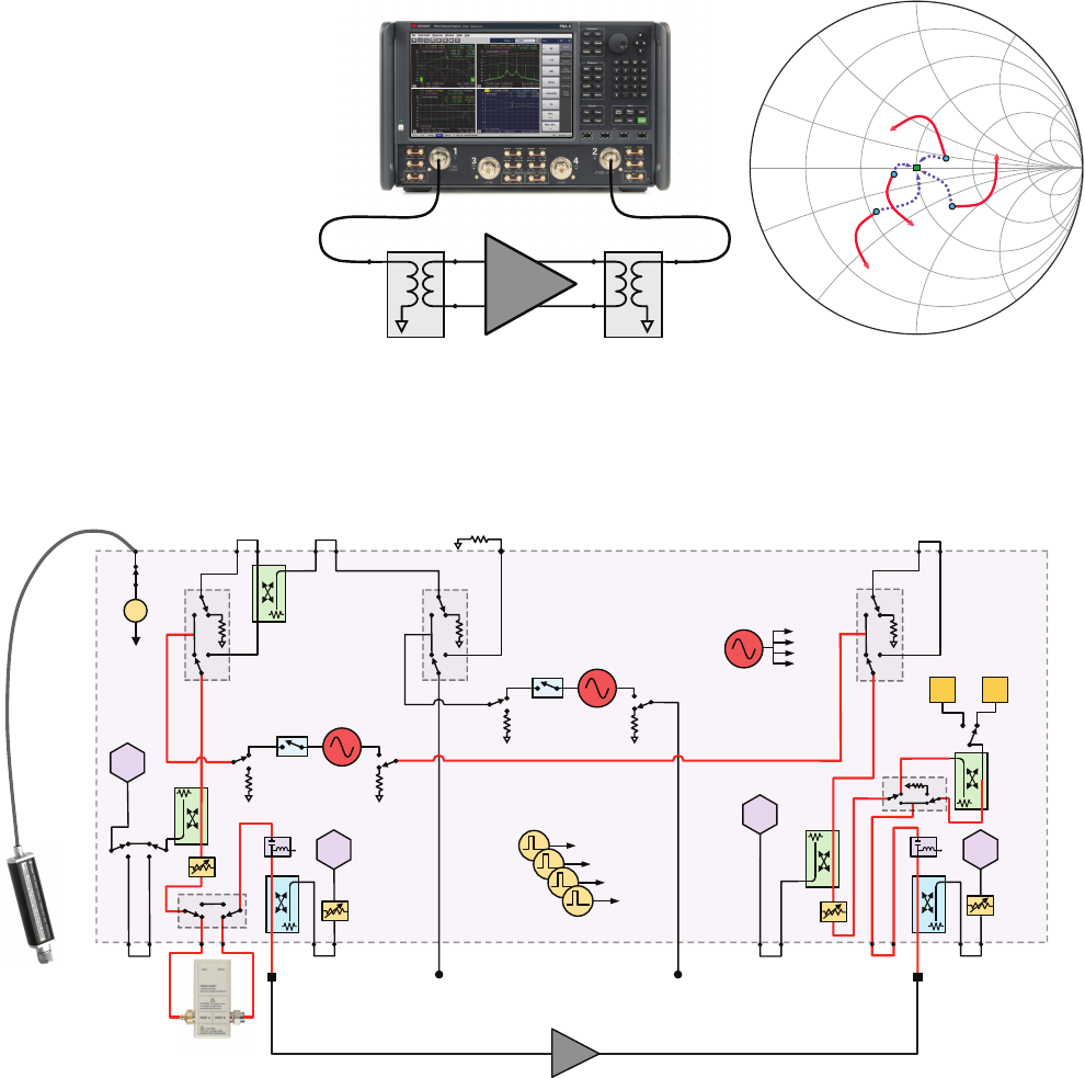 noise receivers, pulse modulators and generators, and a flexible set of switches and RF