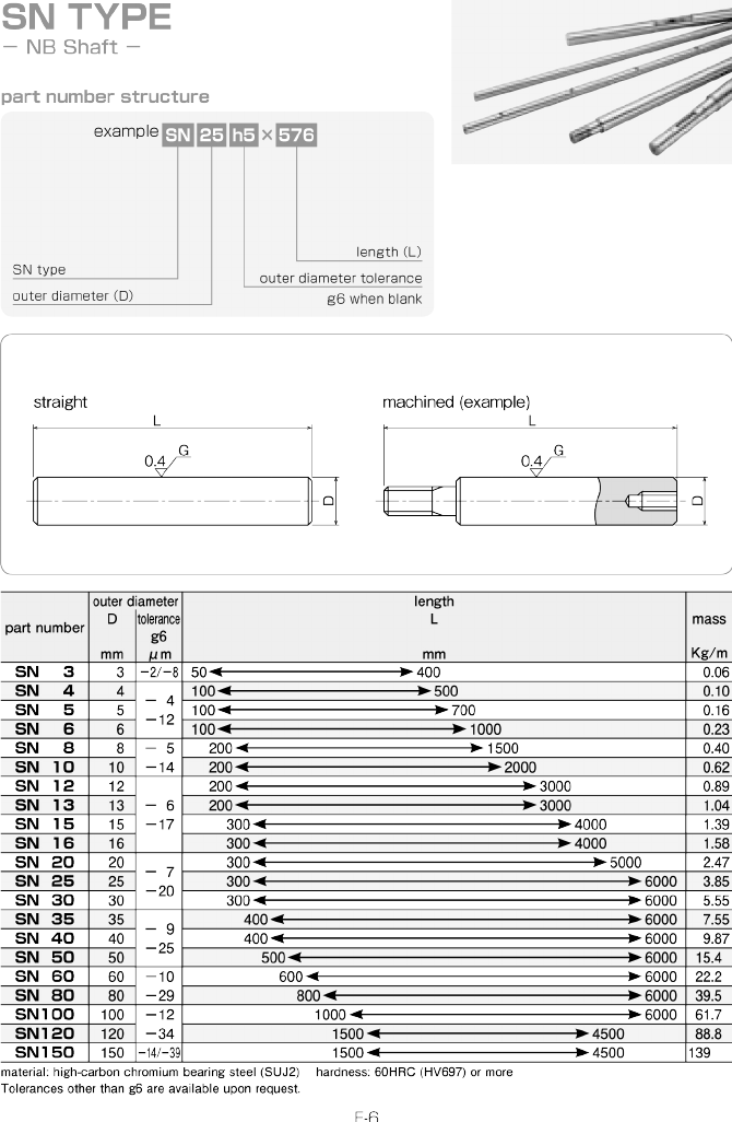 NB Shafts L011368 SN Series Spec Sheet