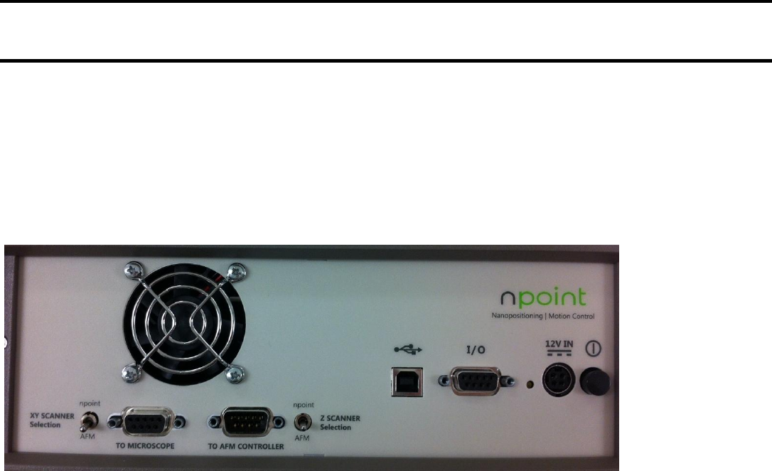 into the connector labeled “TO MICROSCOPE”. The cable provided by nPoint plugs into the connector labeled “TO AFM