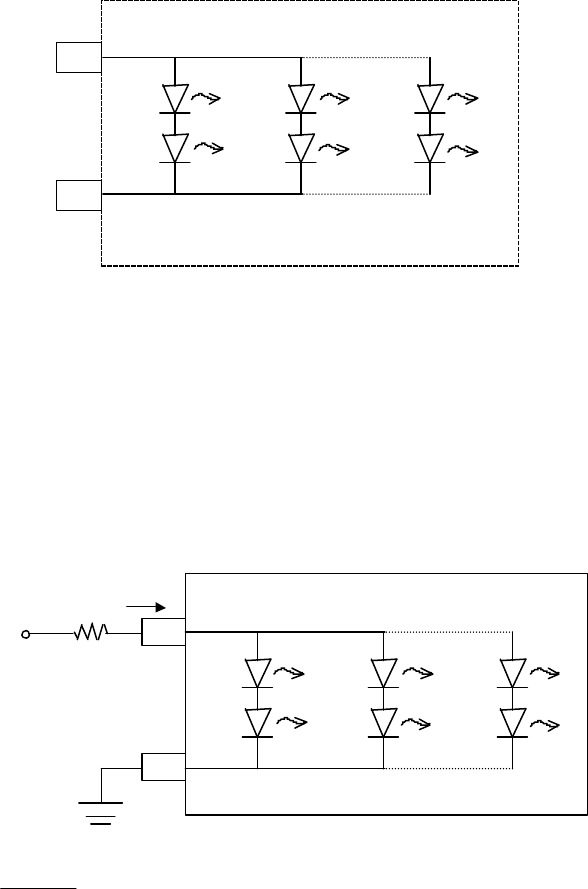 A current limiting resistor should be added in series to limit the current to the LED assembly. The resistor can be