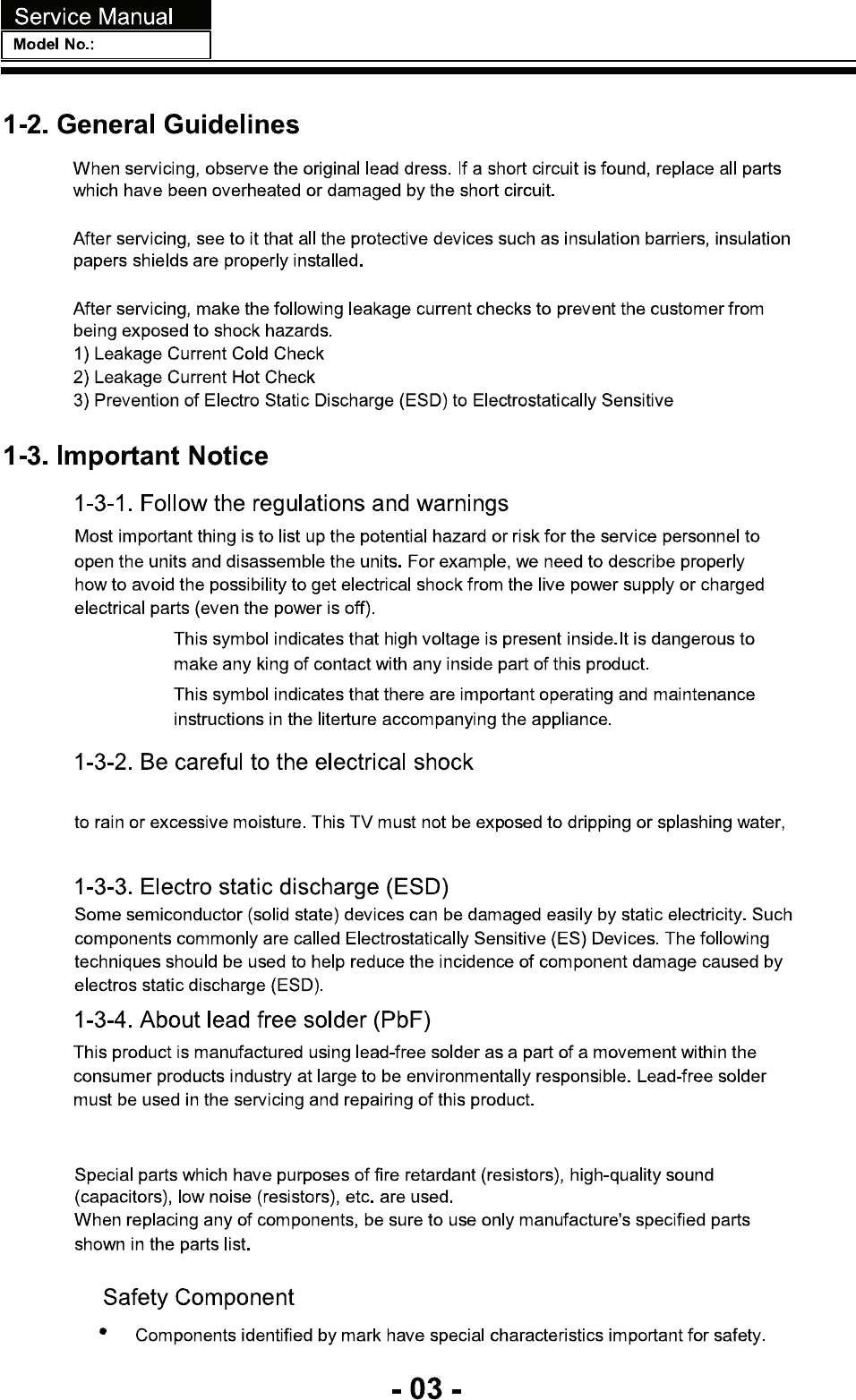 User Manual: LE32N1620 SERVICE MANUAL