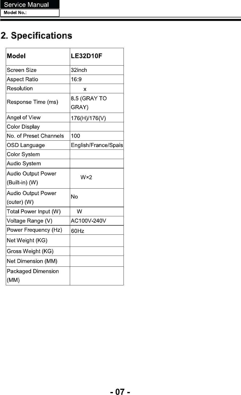 F LE32N1620 SERVICE MANUAL