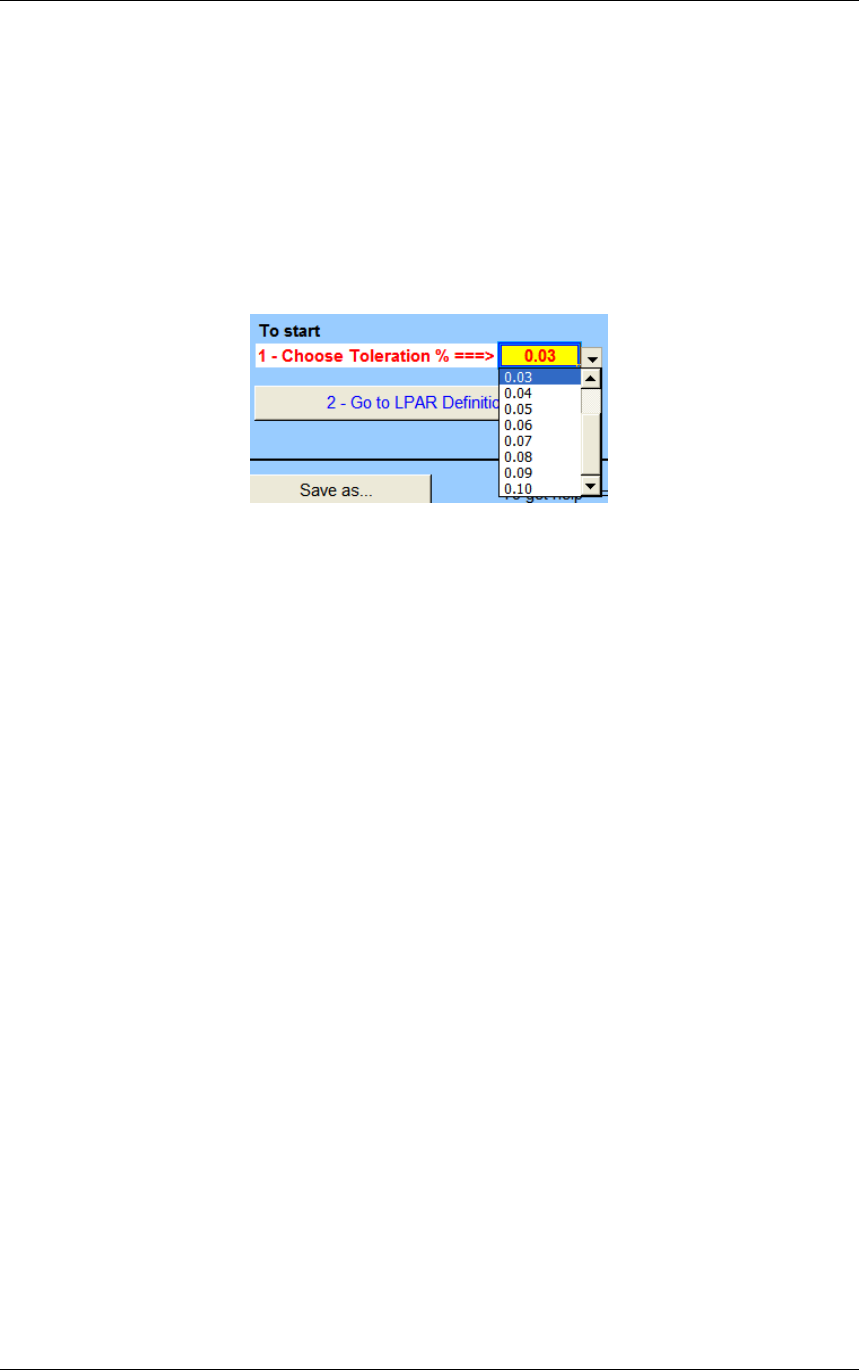 You choose a value for the toleration percentage on the list provided on the START as follow: