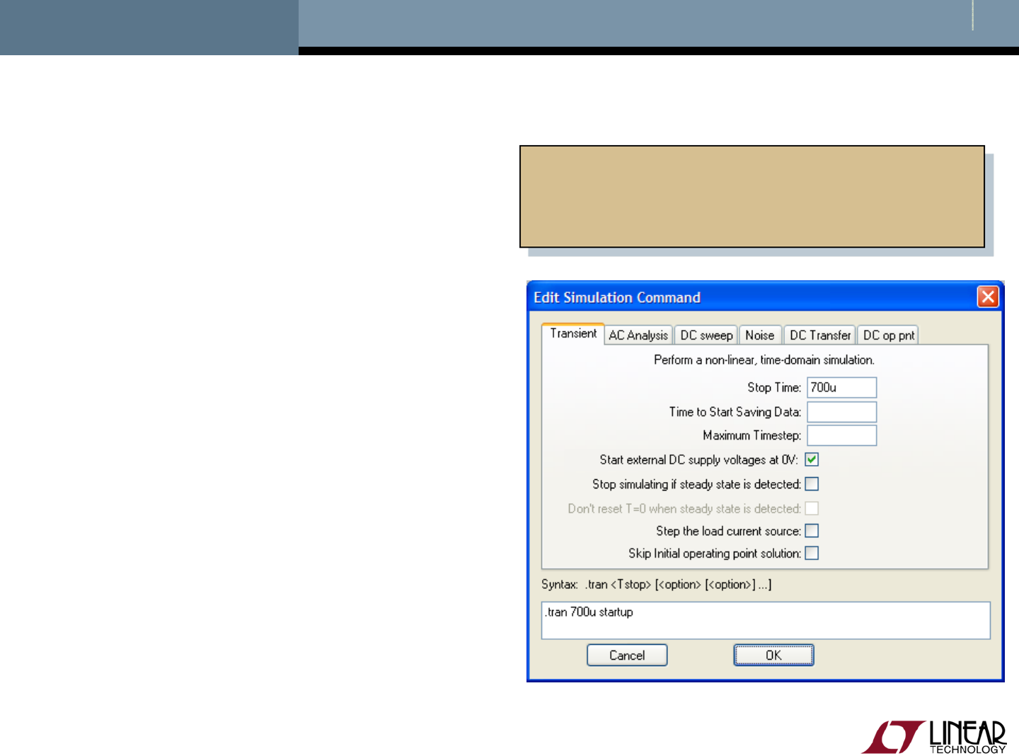 - Add a Linear Technology Macromodel