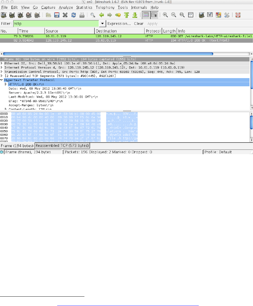 which is highlighted in the packet-listing window). Recall that since the HTTP message