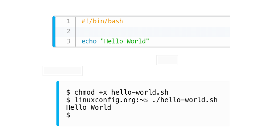 to the terminal output. Using any text editor to create a new file named hello.sh containing