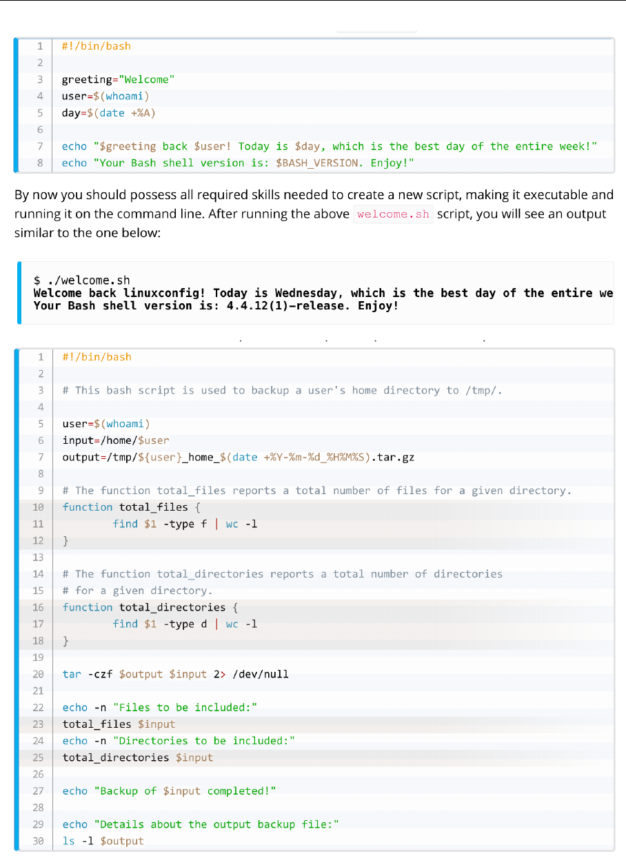 Once%ready,%make%your%script%executable%with%the chmod %command%and%execute%it%using%