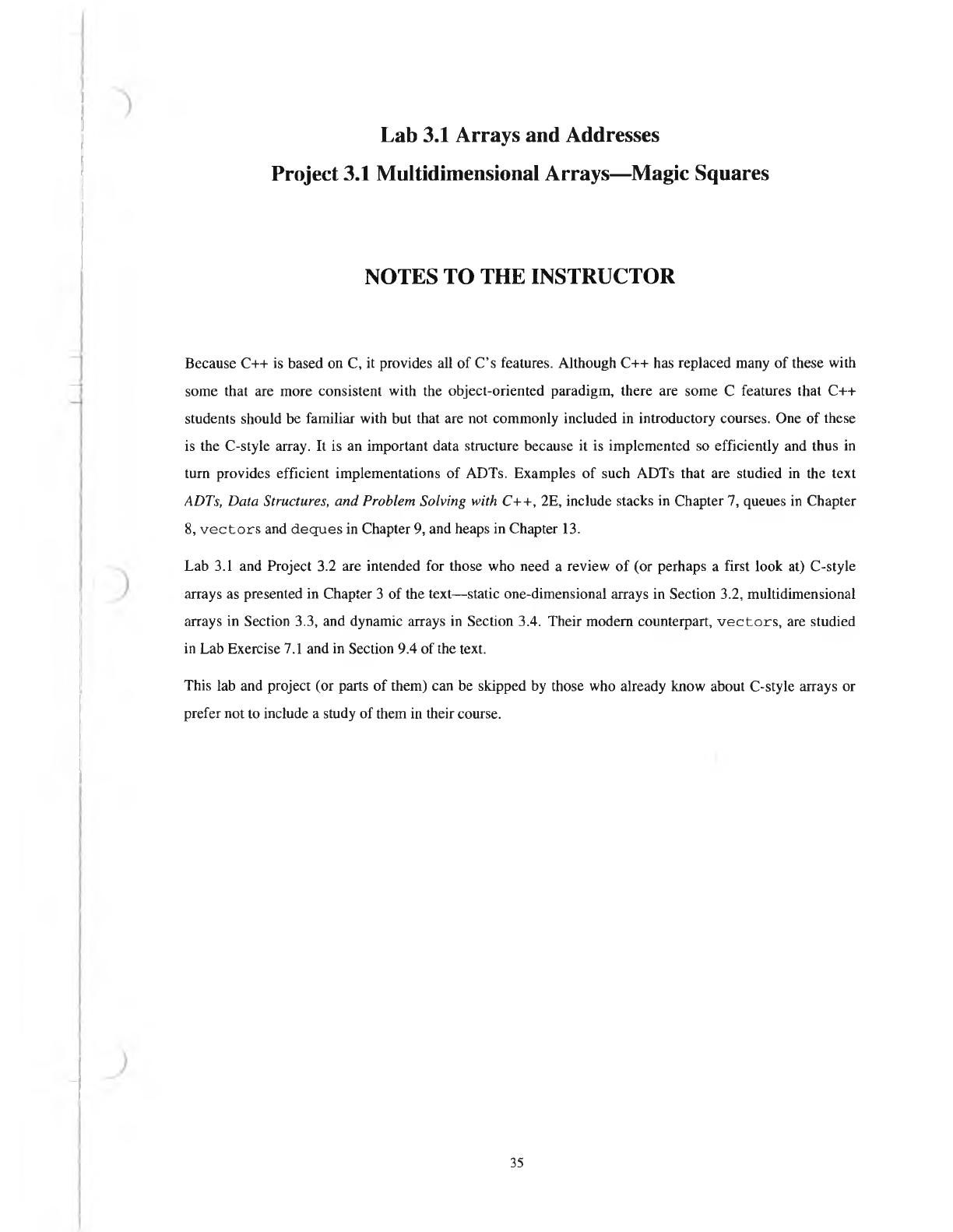 and in Project 3.2. Additional information about arrays can be found in Chapter 3 of the text ADTs, Data