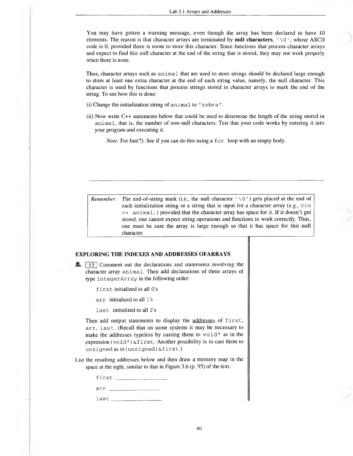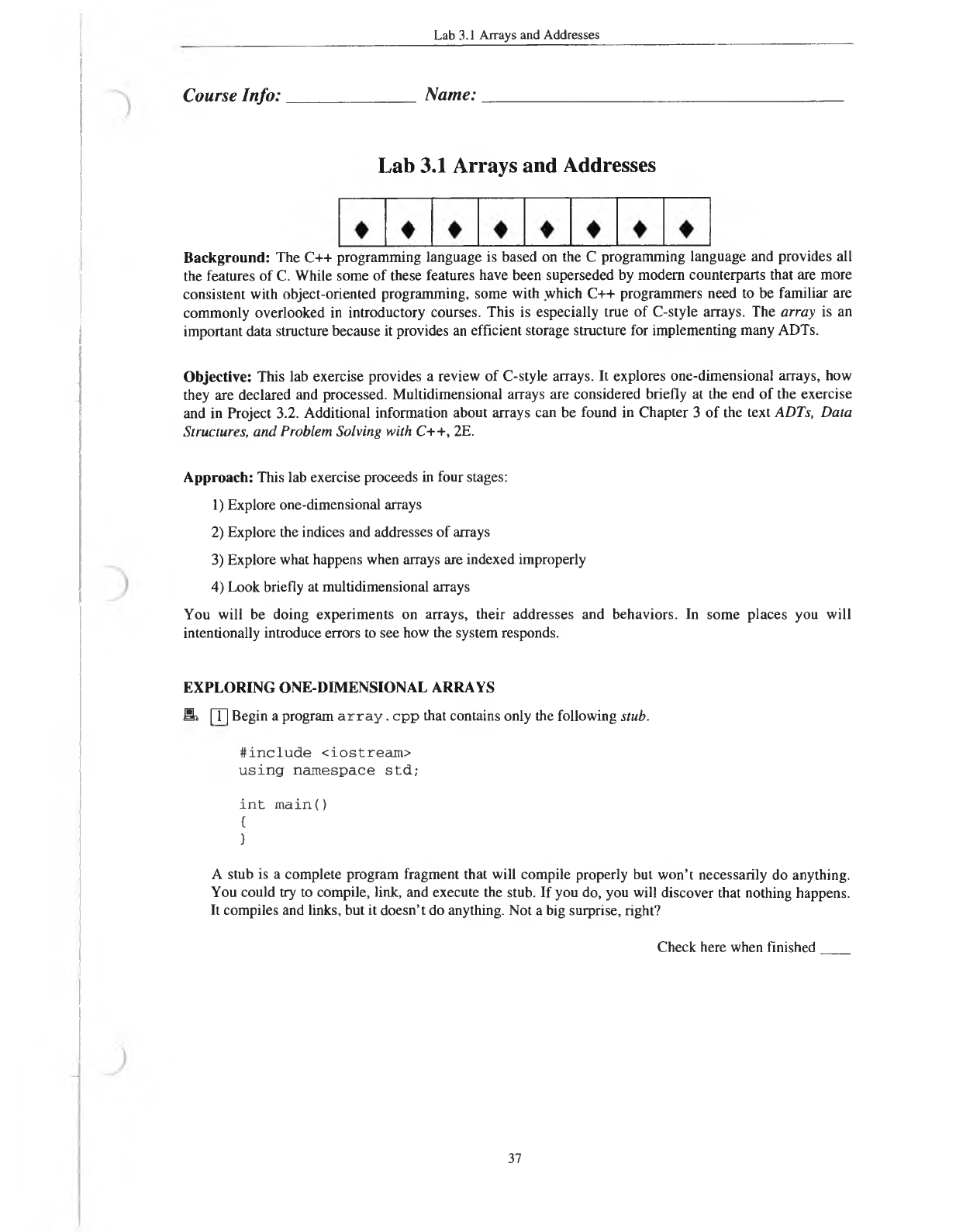 Objective: This lab exercise provides a review of C-style arrays. It explores one-dimensional arrays, how