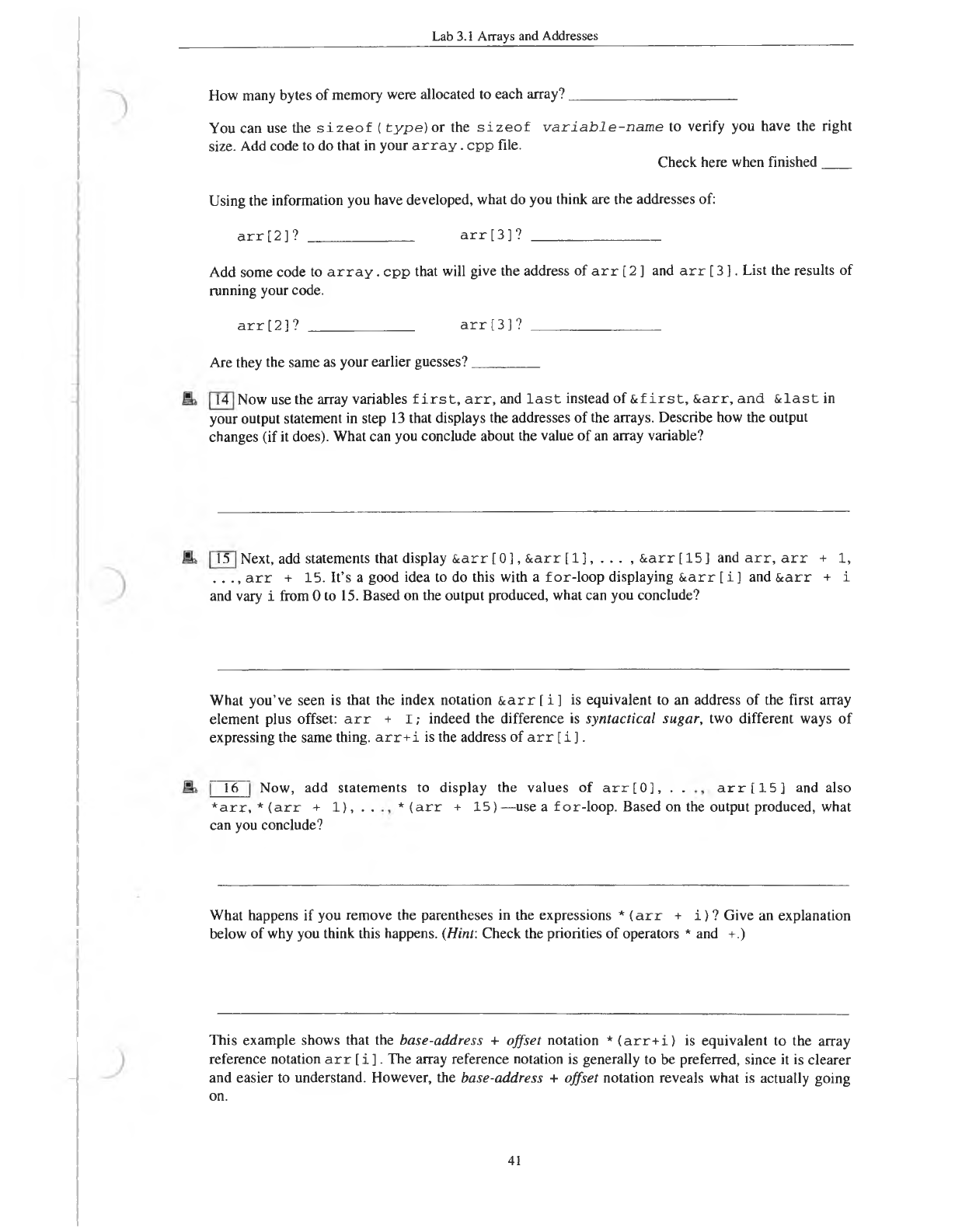 You will be doing experiments on arrays, their addresses and behaviors. In some places you will