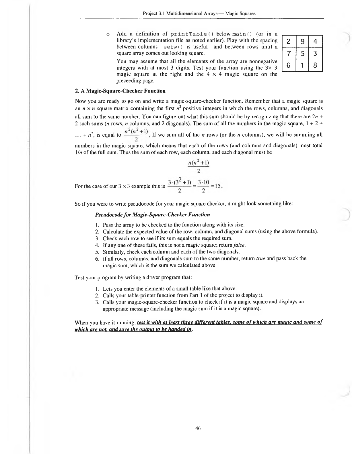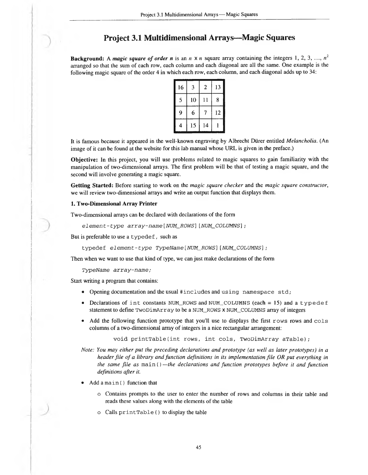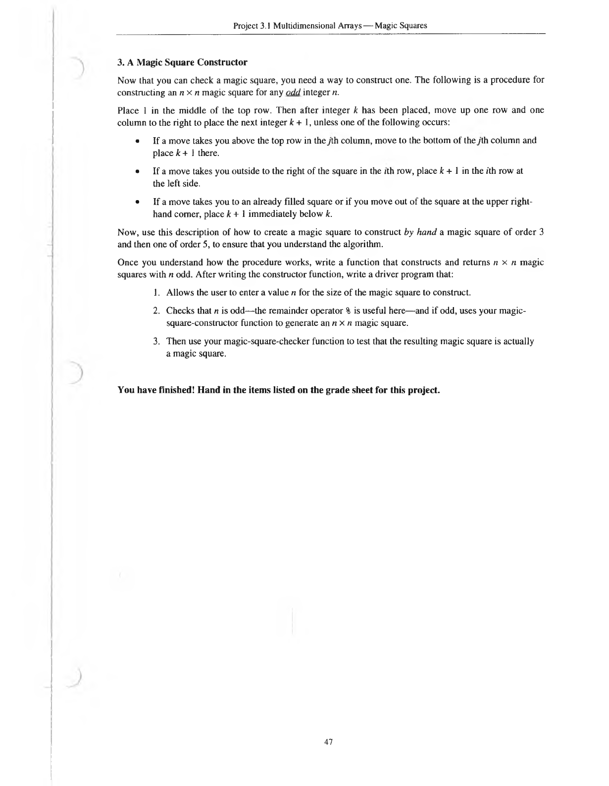 Project 3.1 Multidimensional Arrays— Magic Squares