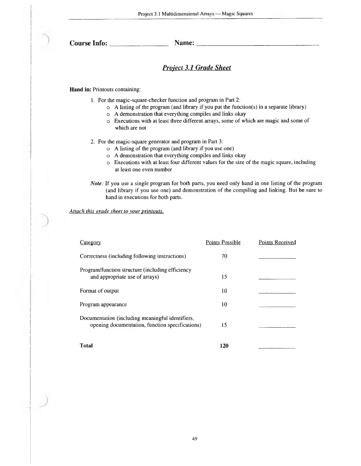 Project 3.1 Grade Sheet