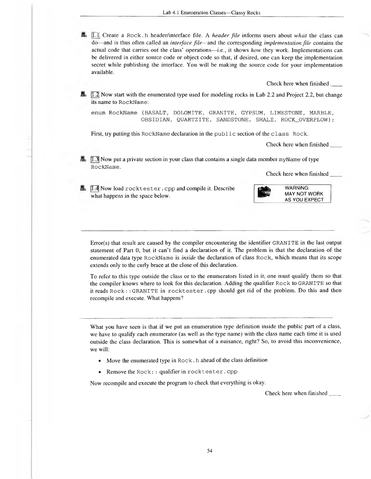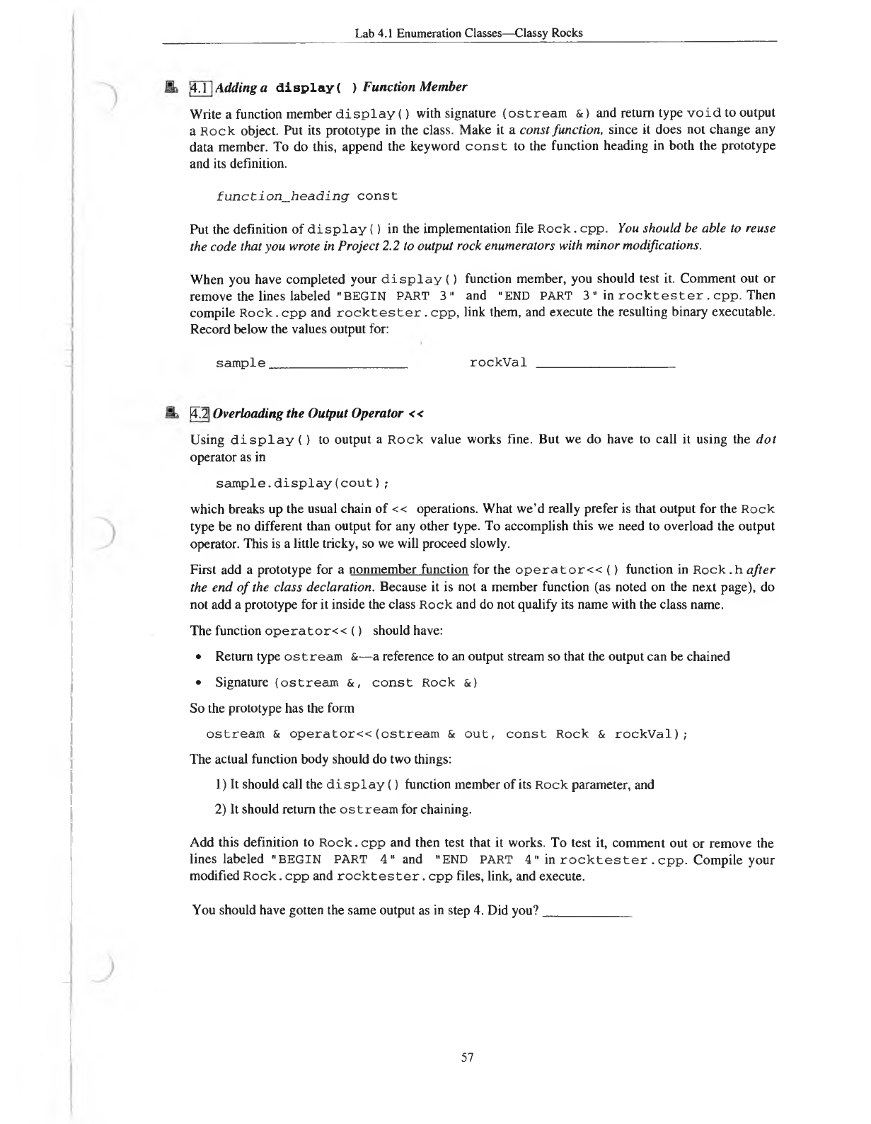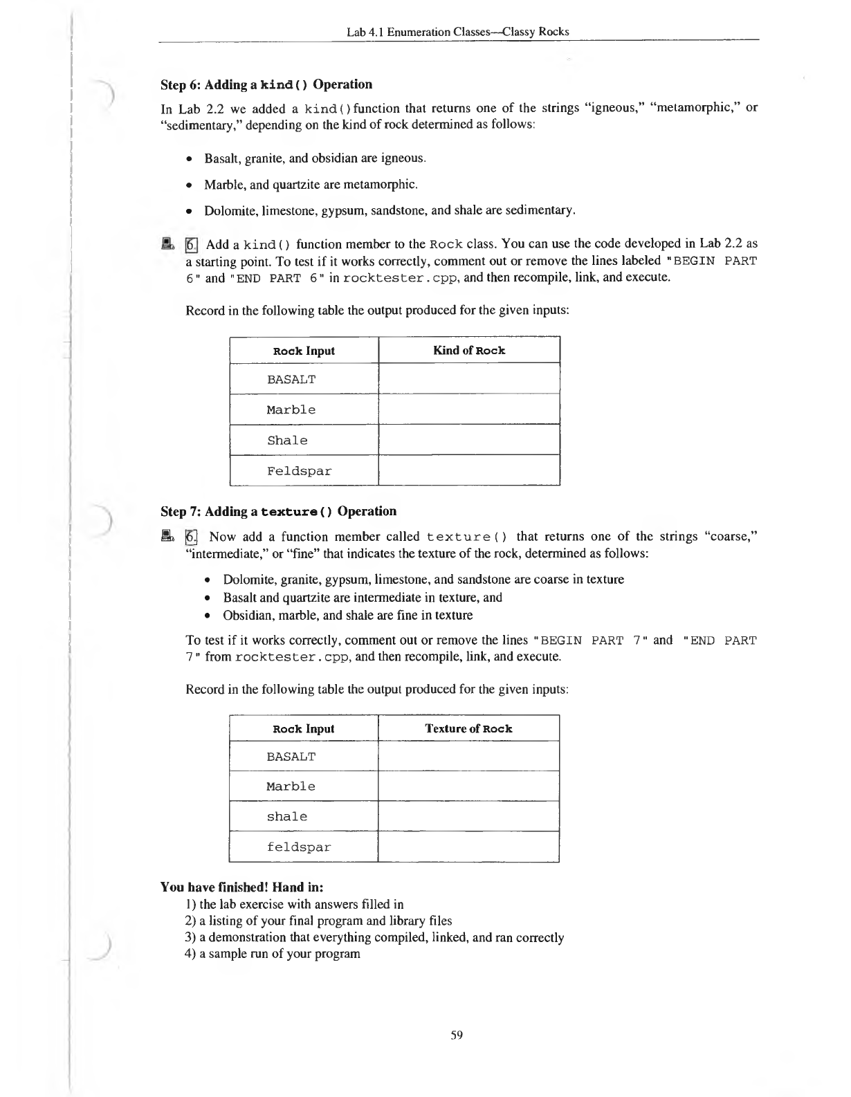 5. Lab Exercise 4.1 uses the driver program r o c k t e s t e r . cpp to test the Rock class as it is being