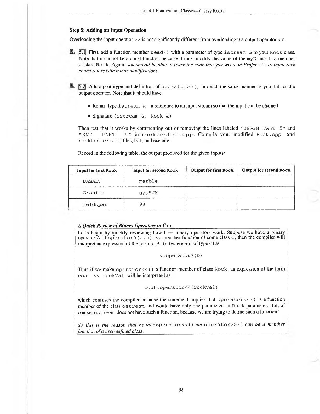 1. Parts 4 and 5 of the lab exercise deal with overloading the output operator « and the input operator >>.