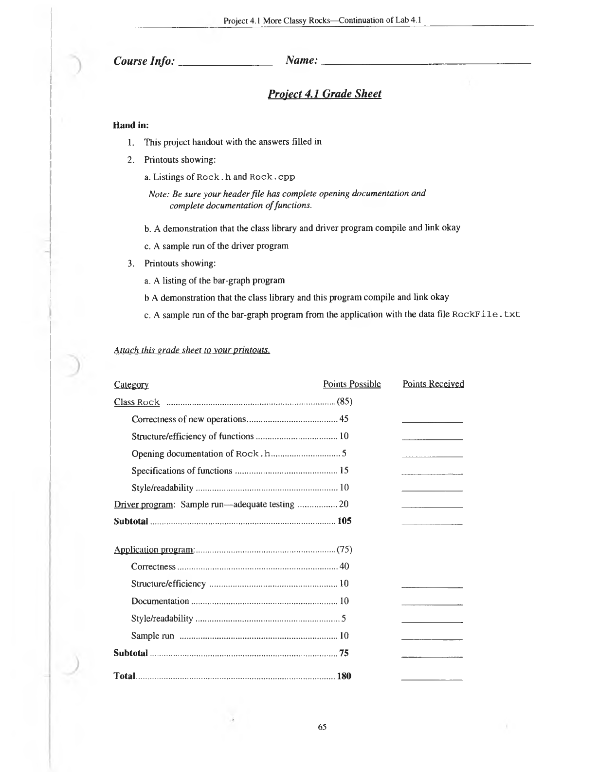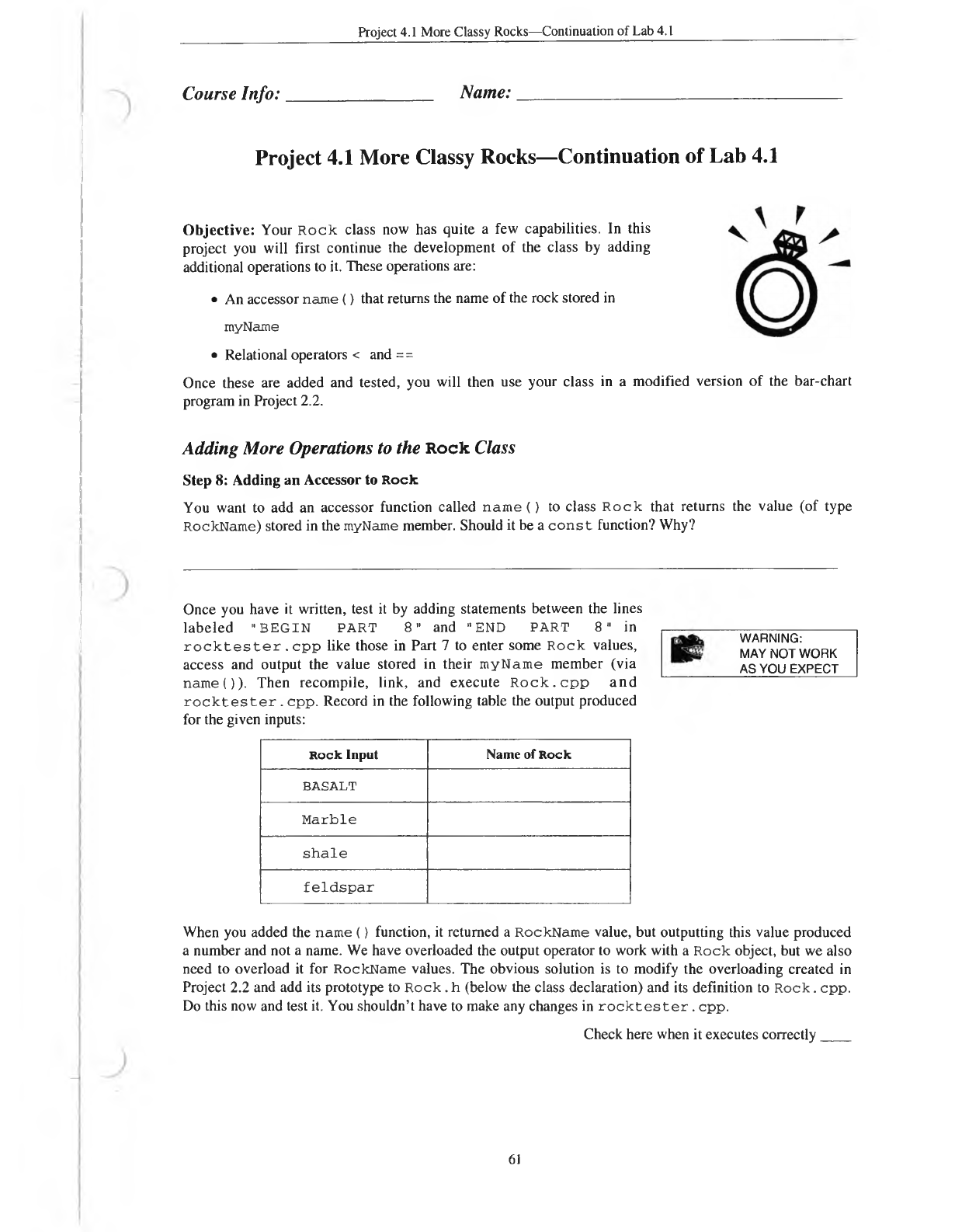Project 4.1 More Classy Rocks—Continuation of Lab 4.1