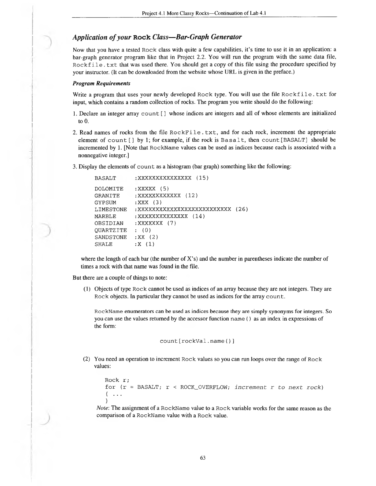 developed. The application in Project 4.1 uses the data file R o c k f il e . t x t (which is the same as the