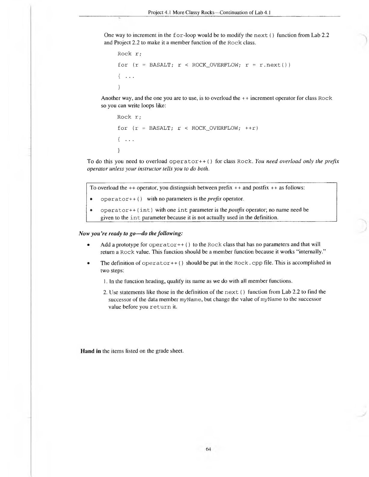 • Add a prototype for operator++ () to the Rock class that has no parameters and that will