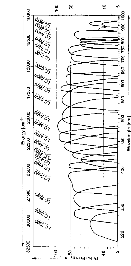 LC 4100 Stilbene 1 415 403-428 Ar+, all lines UV 3.0 EG 0.75 +