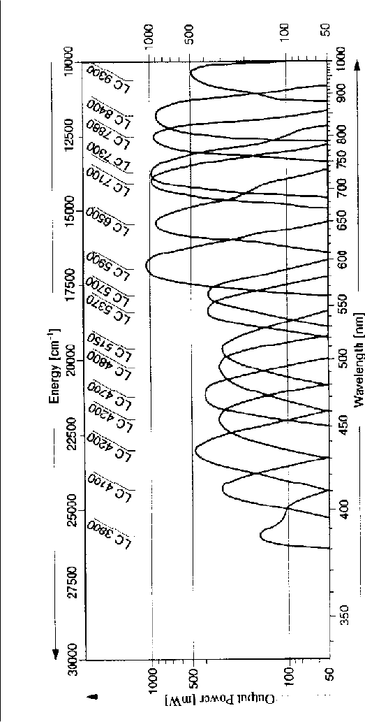 LC 4800 Coumarin 102 482 463-515 Ar+, UV, 350-386nm 3.0 BZ/EG 2.0