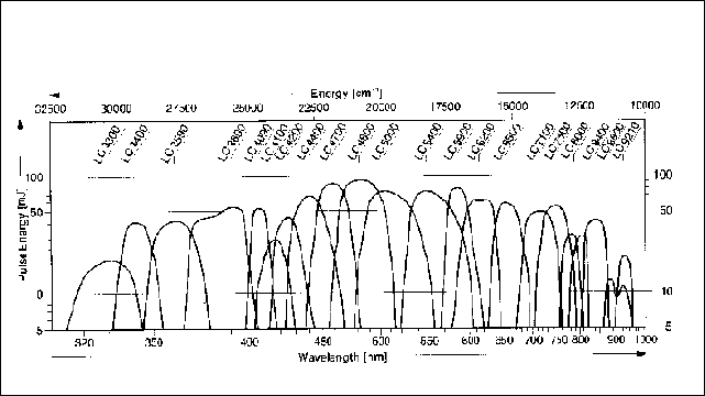 Lambdachrome Dye Peak Tuning Pump source char. Power SoLCent Conc. Stability***