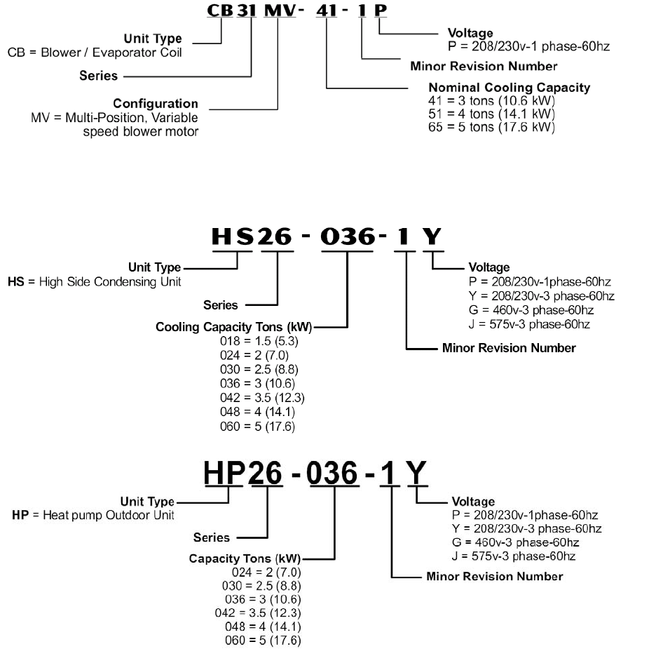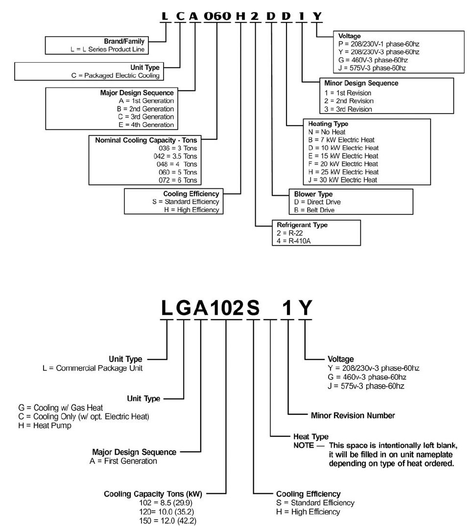 All Lennox product is set up with a systematic coding system for both model