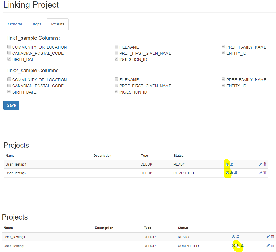 project you will be prompted to pick either the deduplication or linking project. A deduplication project