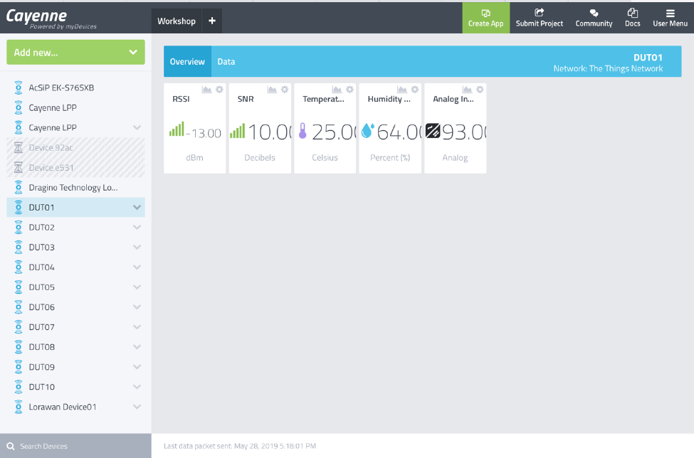 Dashboard Cayenne http://mydevices.com/cayenne/docs/lora/#lora-