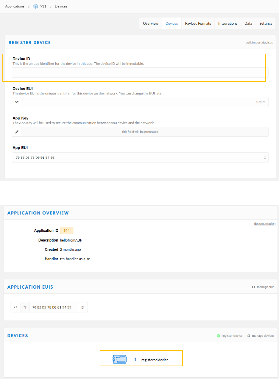 20) Overview Device EUI / Application EUI /Device Address / Network