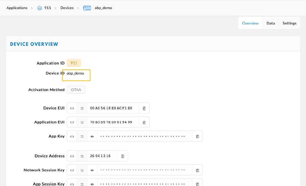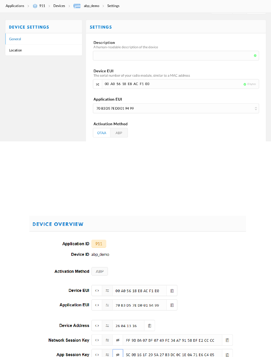 key, App session key Device address NWKSKEY, APPSKEY DEVADDR