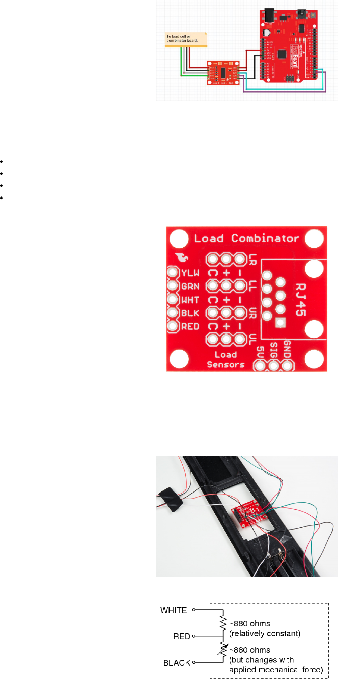 Note: If you are hooking together four of the SparkFun Load Sensors using the Combinator board, you should position the four load