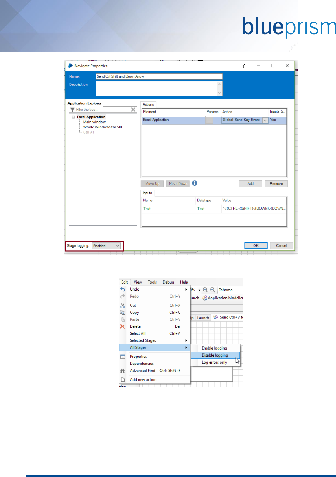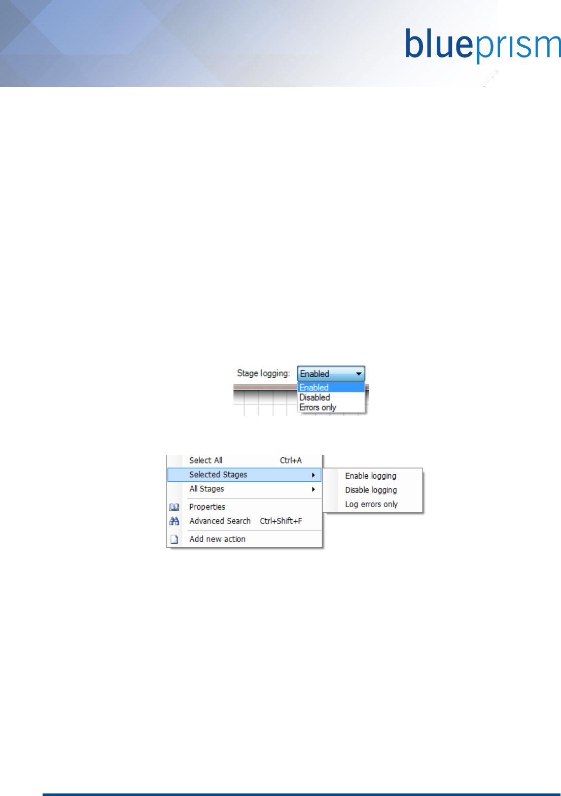 • Logging for stages within an Object should only be enabled during the development phases of a Blue Prism